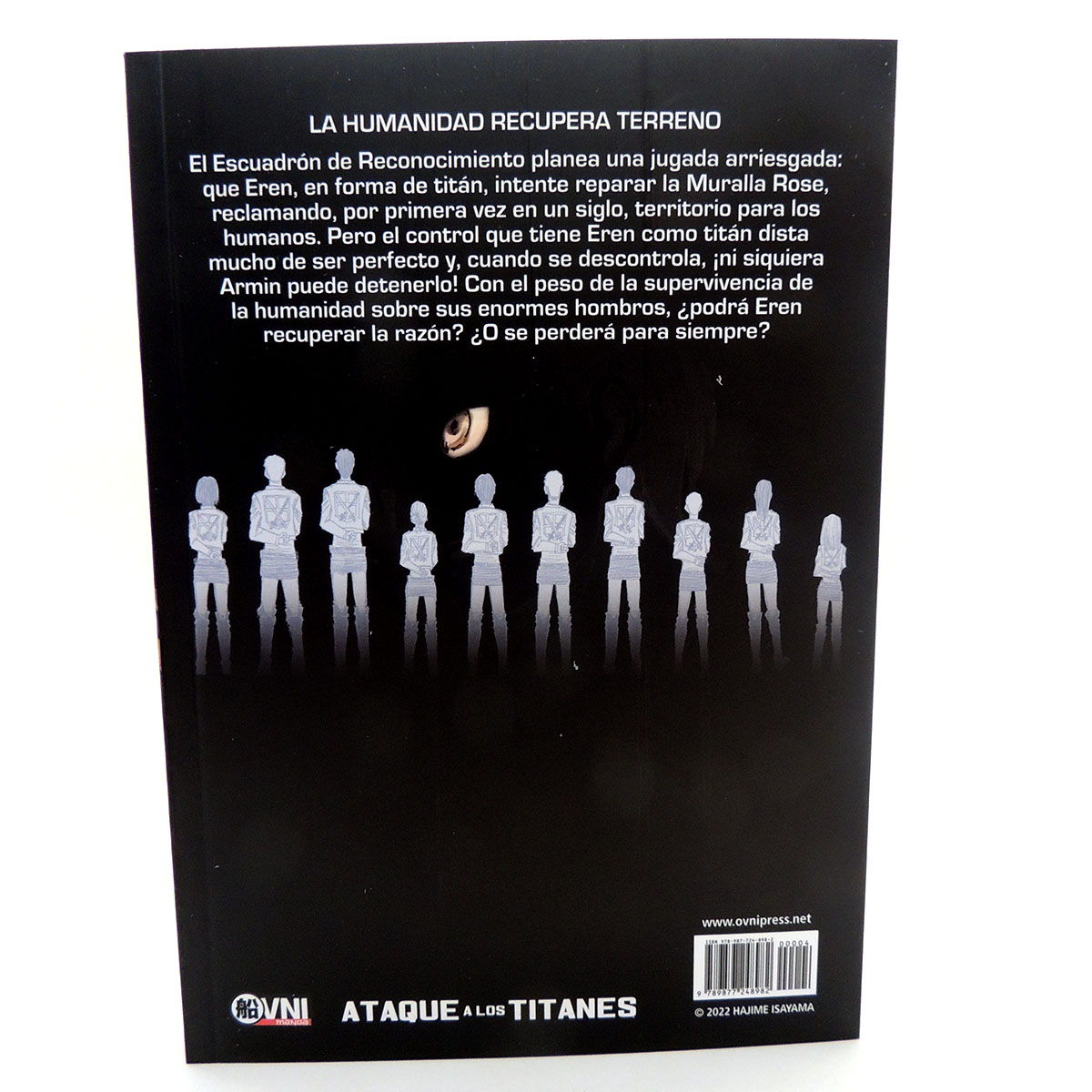 El Escuadrón de Reconocimiento planea una jugada arriesgada; Que Eren, en forma de Titán, intente reparar la Muralla Rose, reclamando, por primera vez en un siglo, territorio para los humanos. Pero el control que tieneEren como Titán dista mucho de ser perfecto y, cuando se descontrola, ¡ni siquiera Armin puede detenerlo! Con el peso de la supervivencia de la humanidad sobre sus enormes hombros, ¿podrá Eren recuperar la razón? ¿O se perderá para siempre?