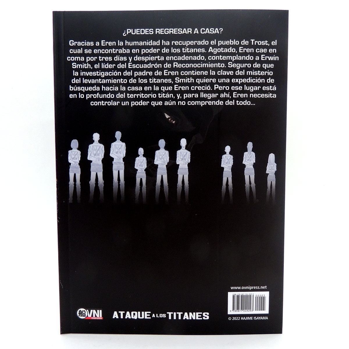 Gracias a Eren la humanidad ha recuperado el pueblo de Trost, el cual se encontraba en poder de los Titanes. Agotado, Eren cae en coma por tres días y despierta encadenado, contemplando a Erwin Smith, el líder del Escuadrón de Reconocimiento. Seguro de que la investigación del padre de Eren contiene la clave del misterio del levantamiento de los Titanes, Smith quiere una expedición de búsqueda hacia la casa en la que Eren creció. Pero ese lugar está en lo profundo del territorio Titán, y, para llegar ahí, Eren necesita controlar un poder que aún no comprende del todo…
