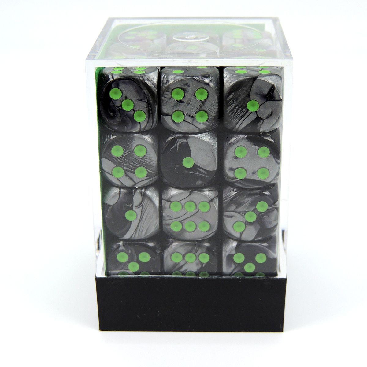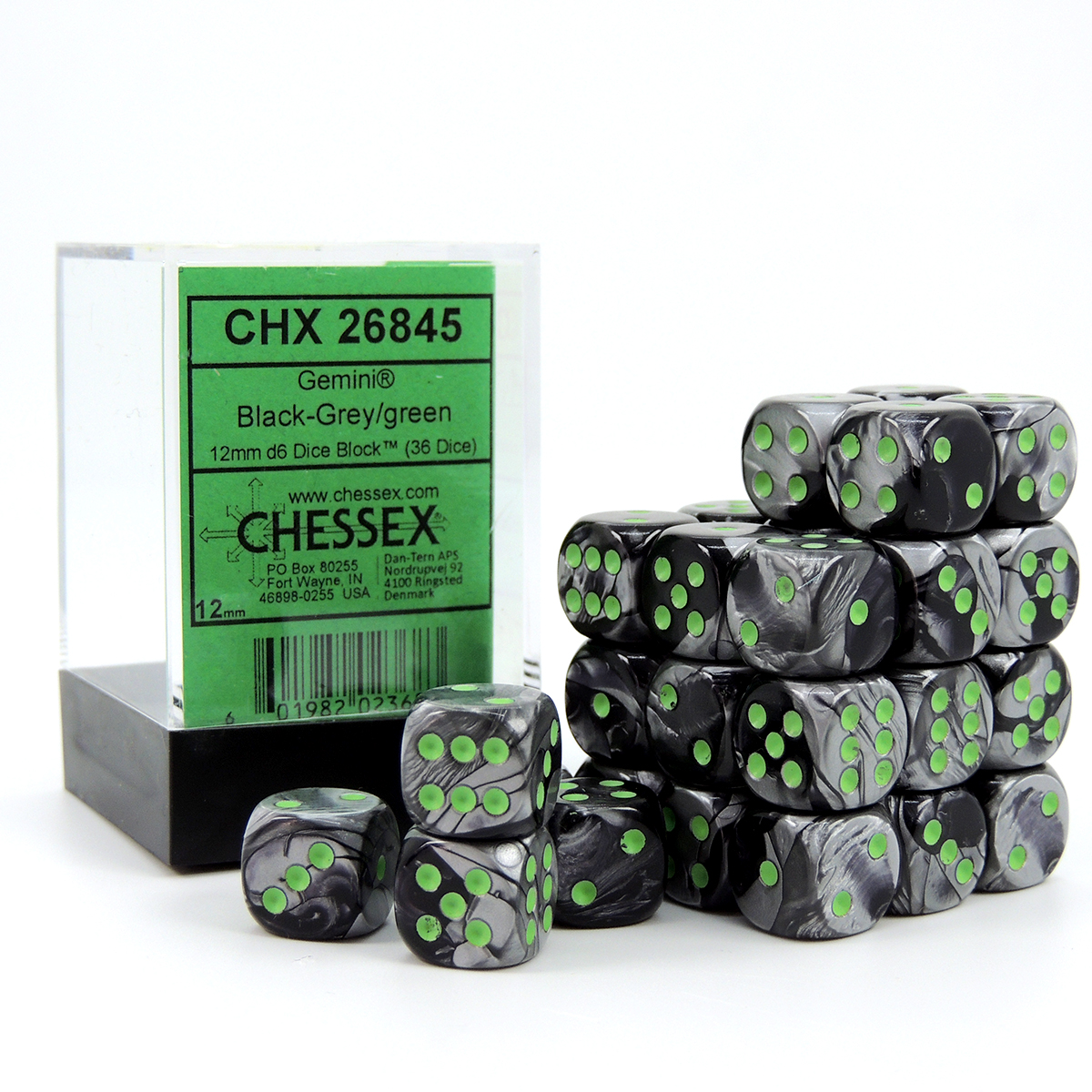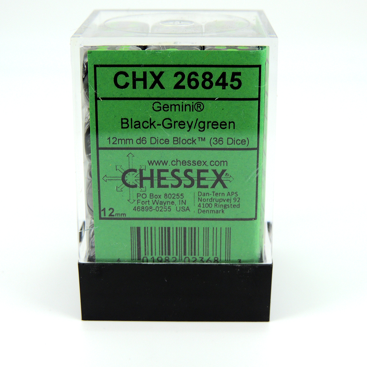 Chessex Dados 12mm Black Gray/Green Gemini Dice D6