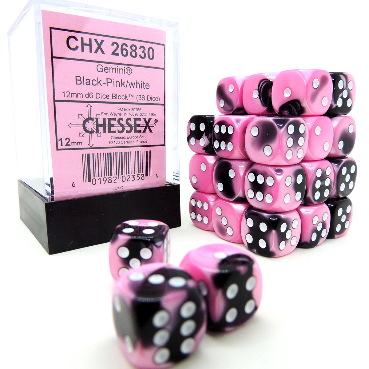 Chessex Dados 12mm Black Pink White Gemini Dice D6
