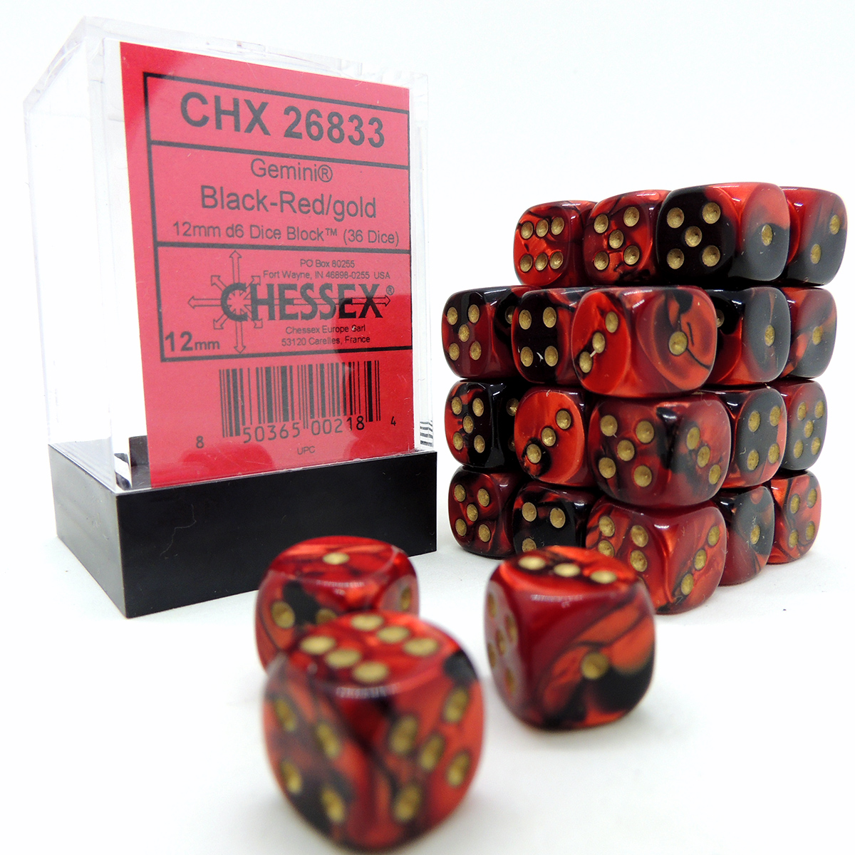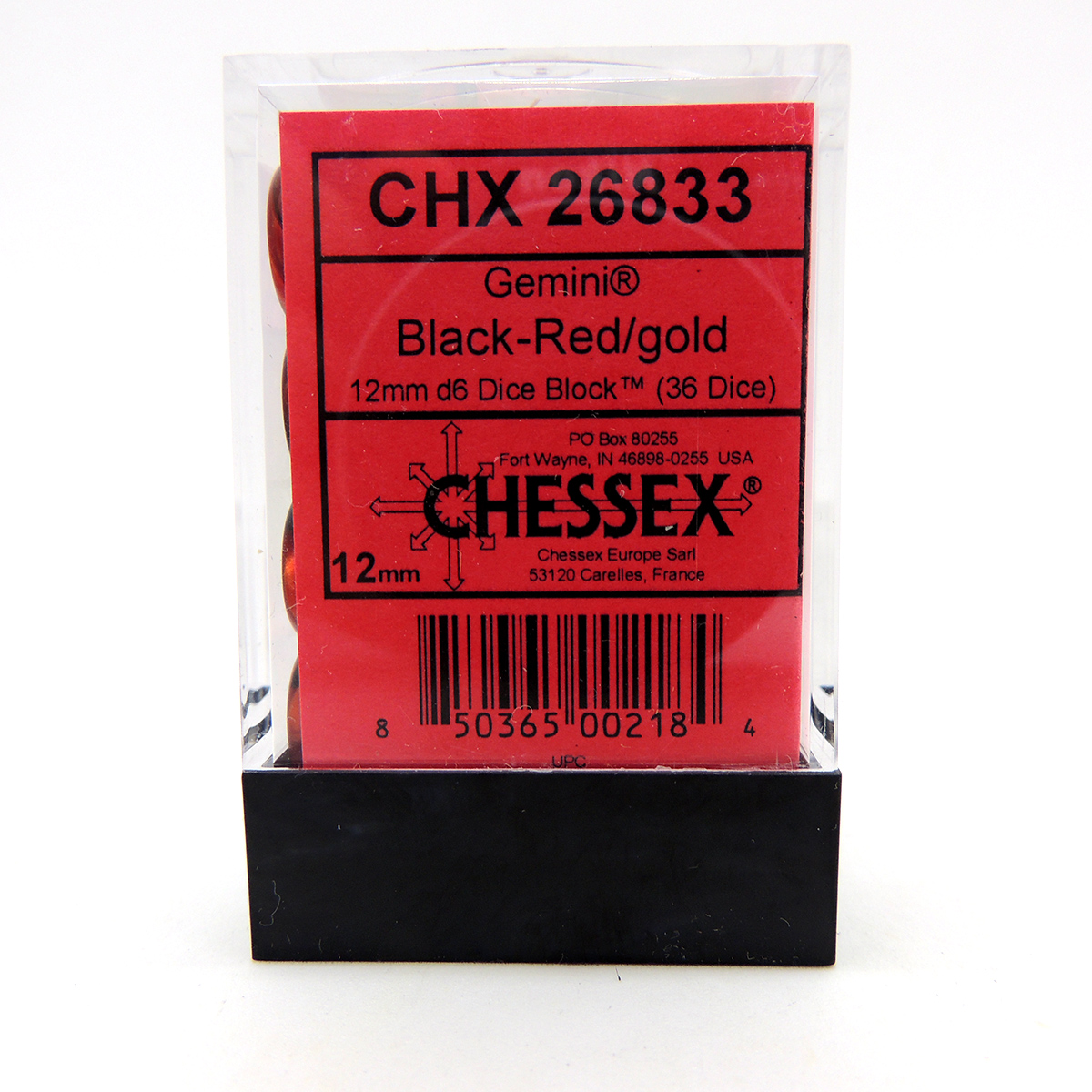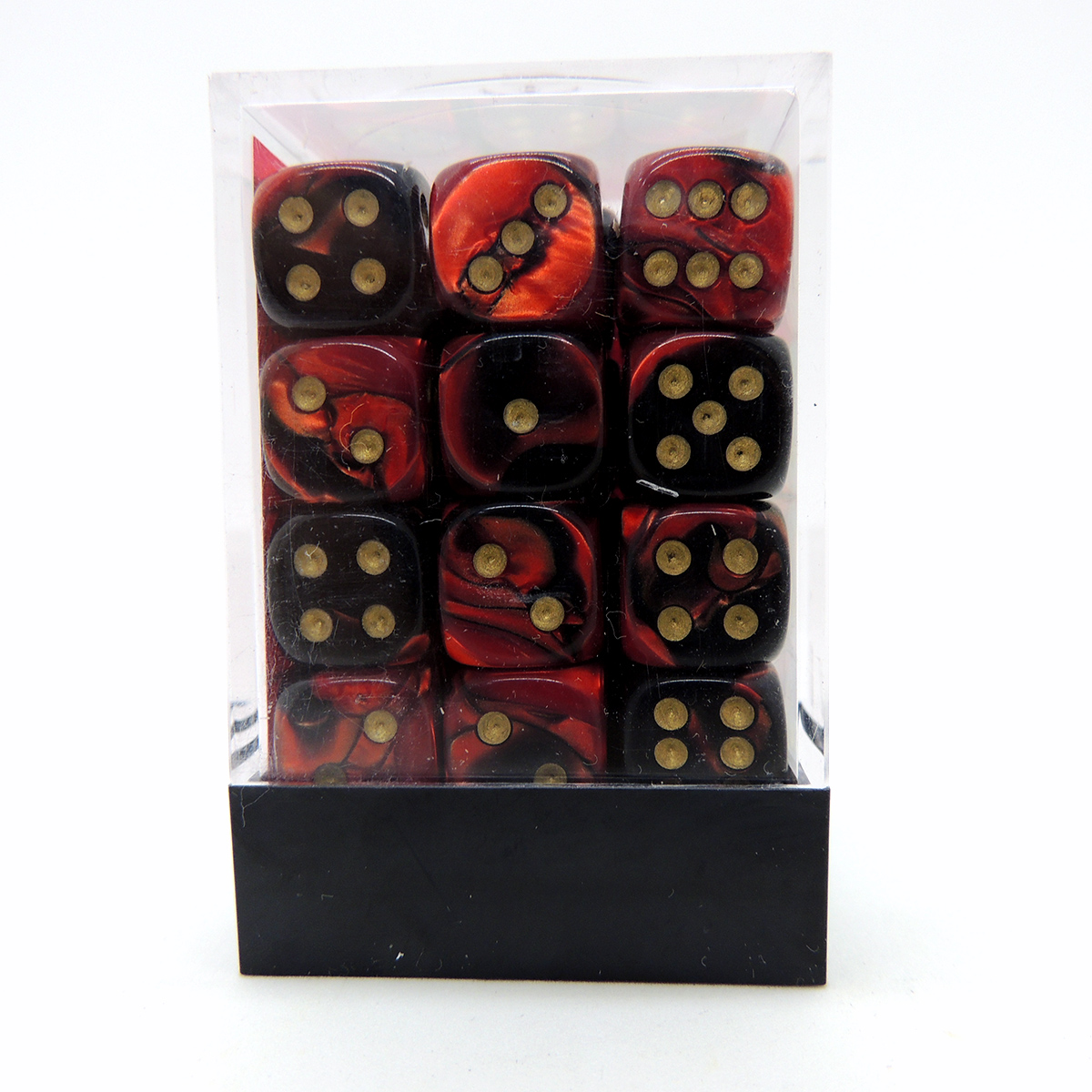 Chessex Dados 12mm Black Red Gold Gemini Dice D6