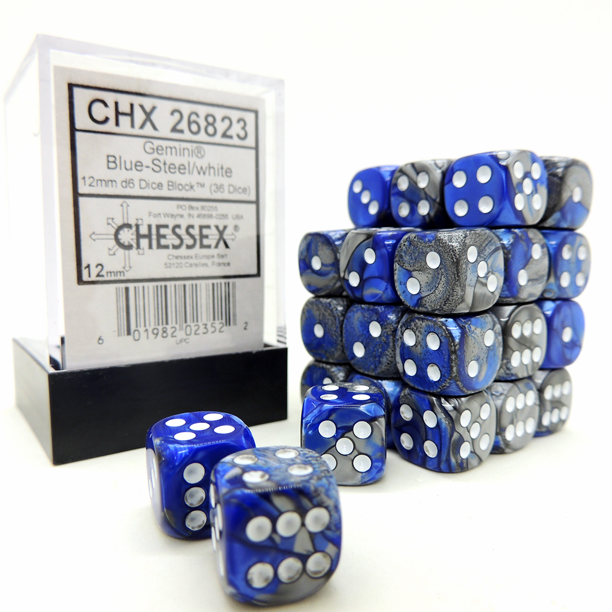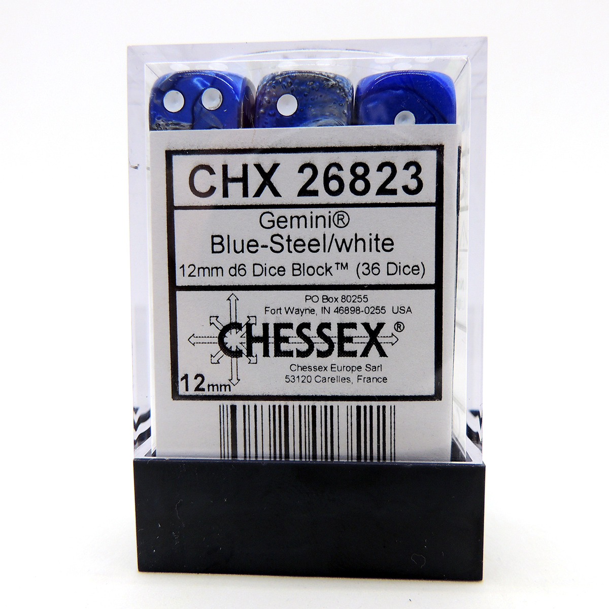 Chessex Dados 12mm Blue Steel White Gemini Dice D6