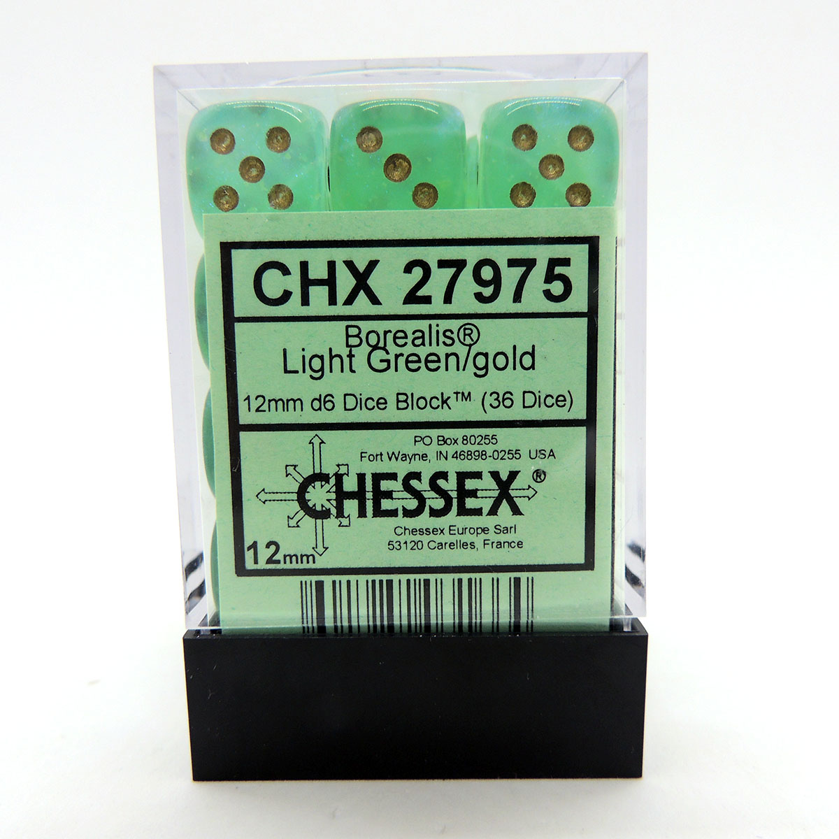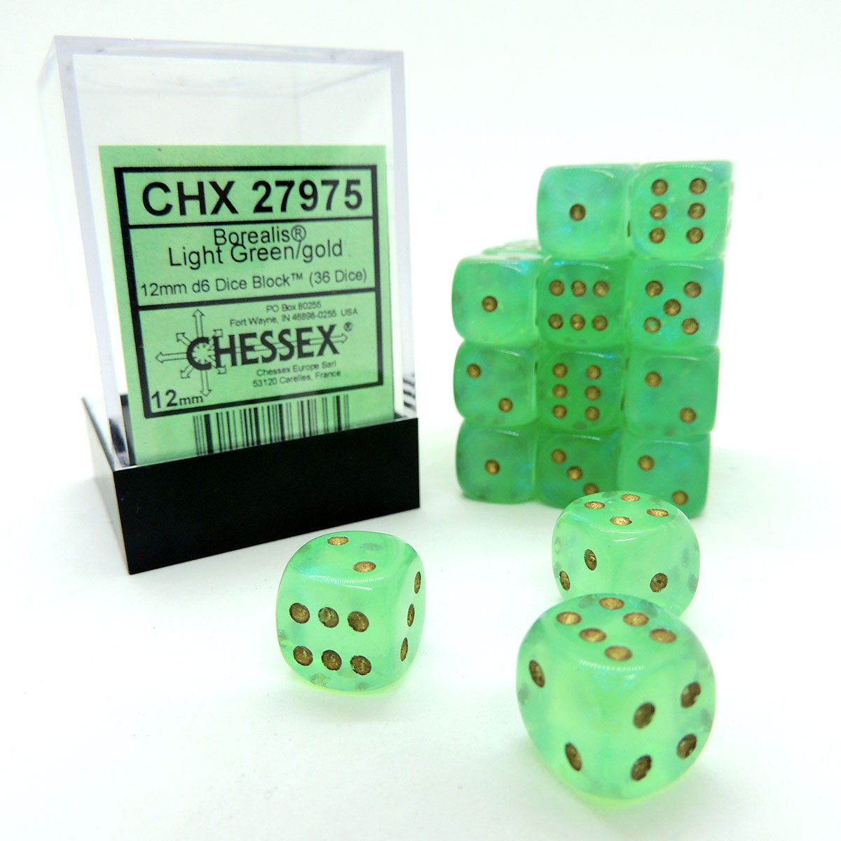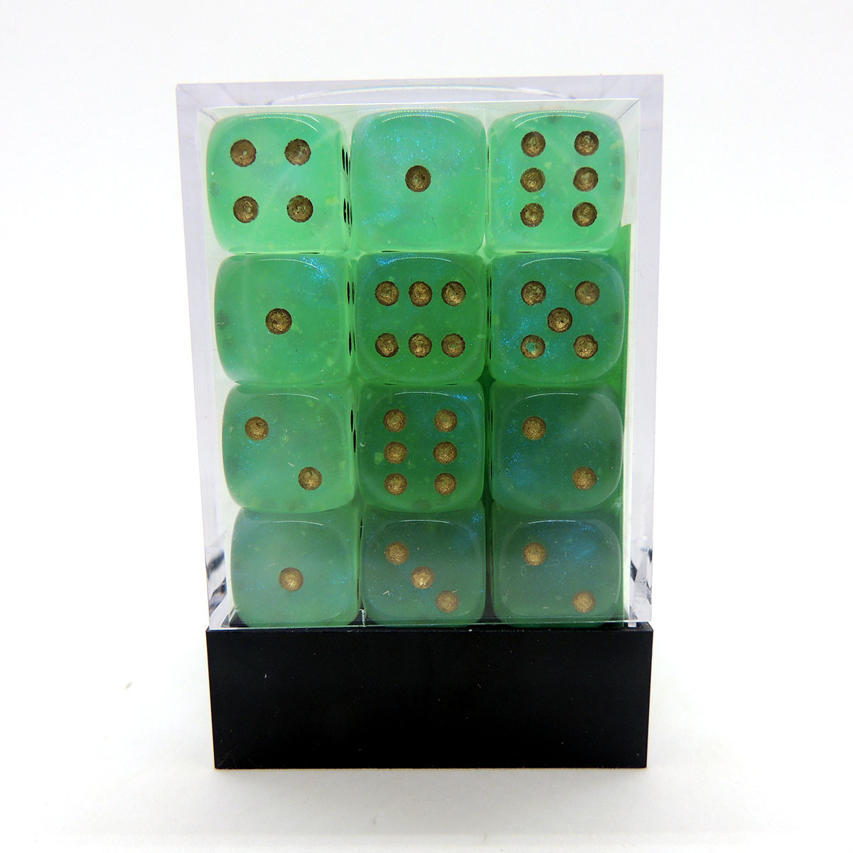 Chessex Dados 12mm Borealis: Light Green Gold Dice