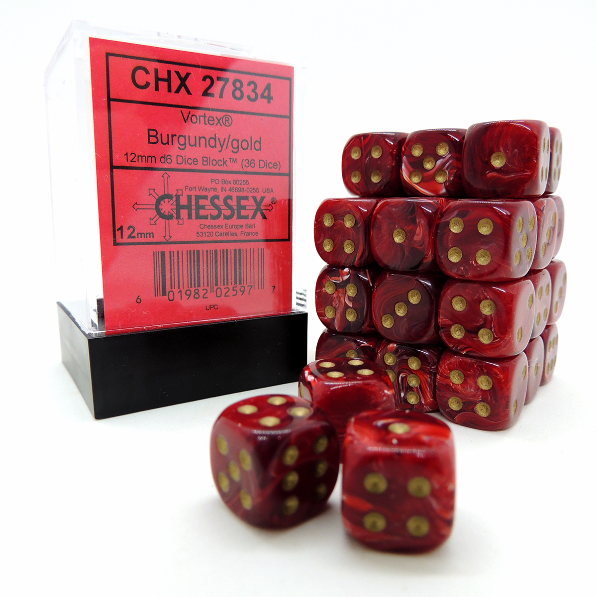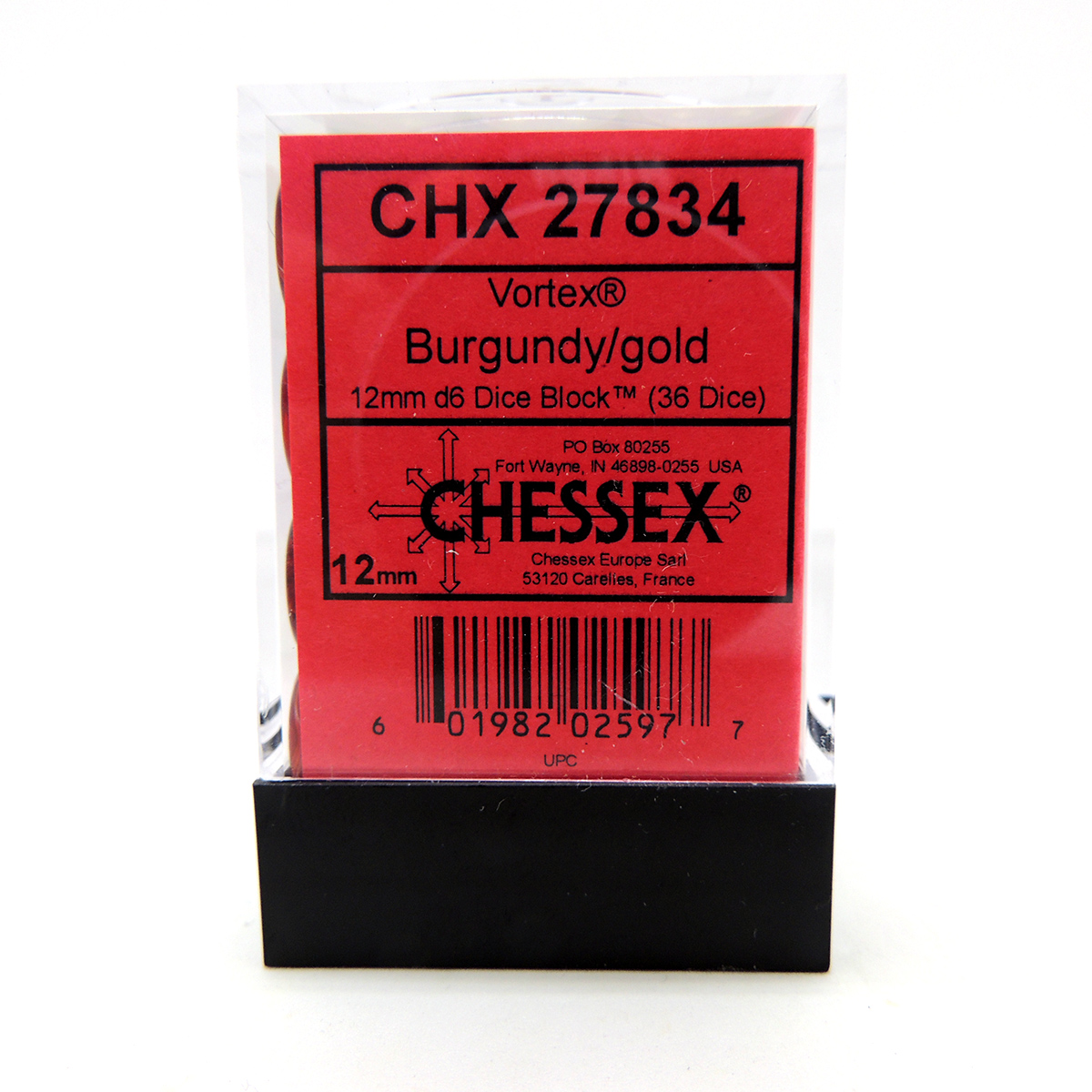 Chessex Dados 12mm Burgundy Gold Vortex Dice D6