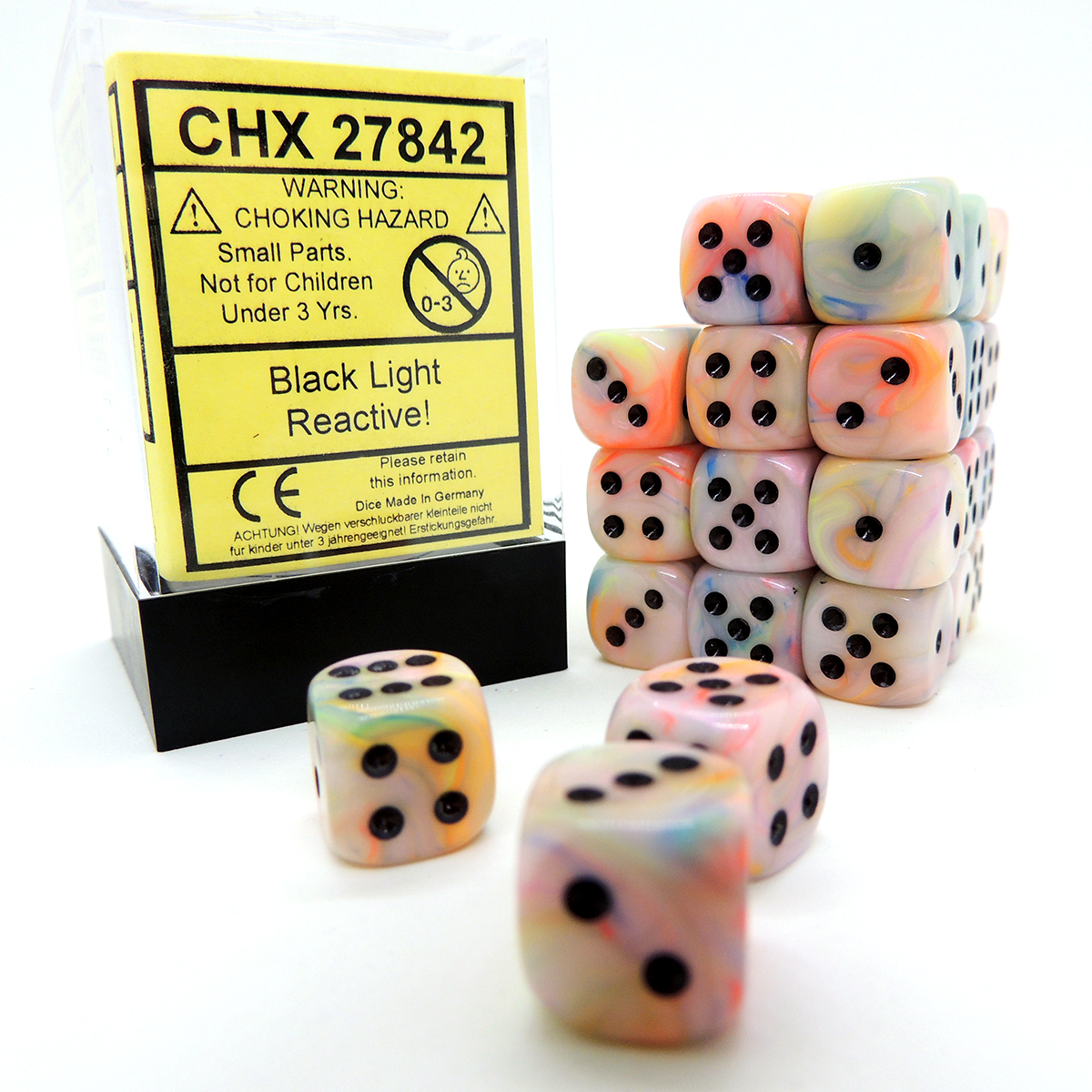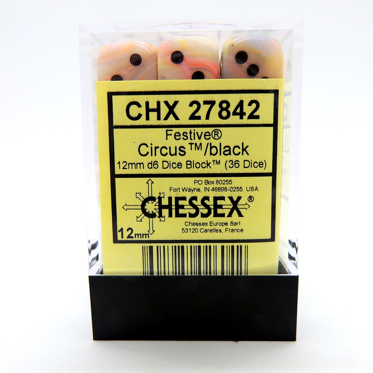 Chessex Dados 12mm Circus/Black Reactive Festive Dice