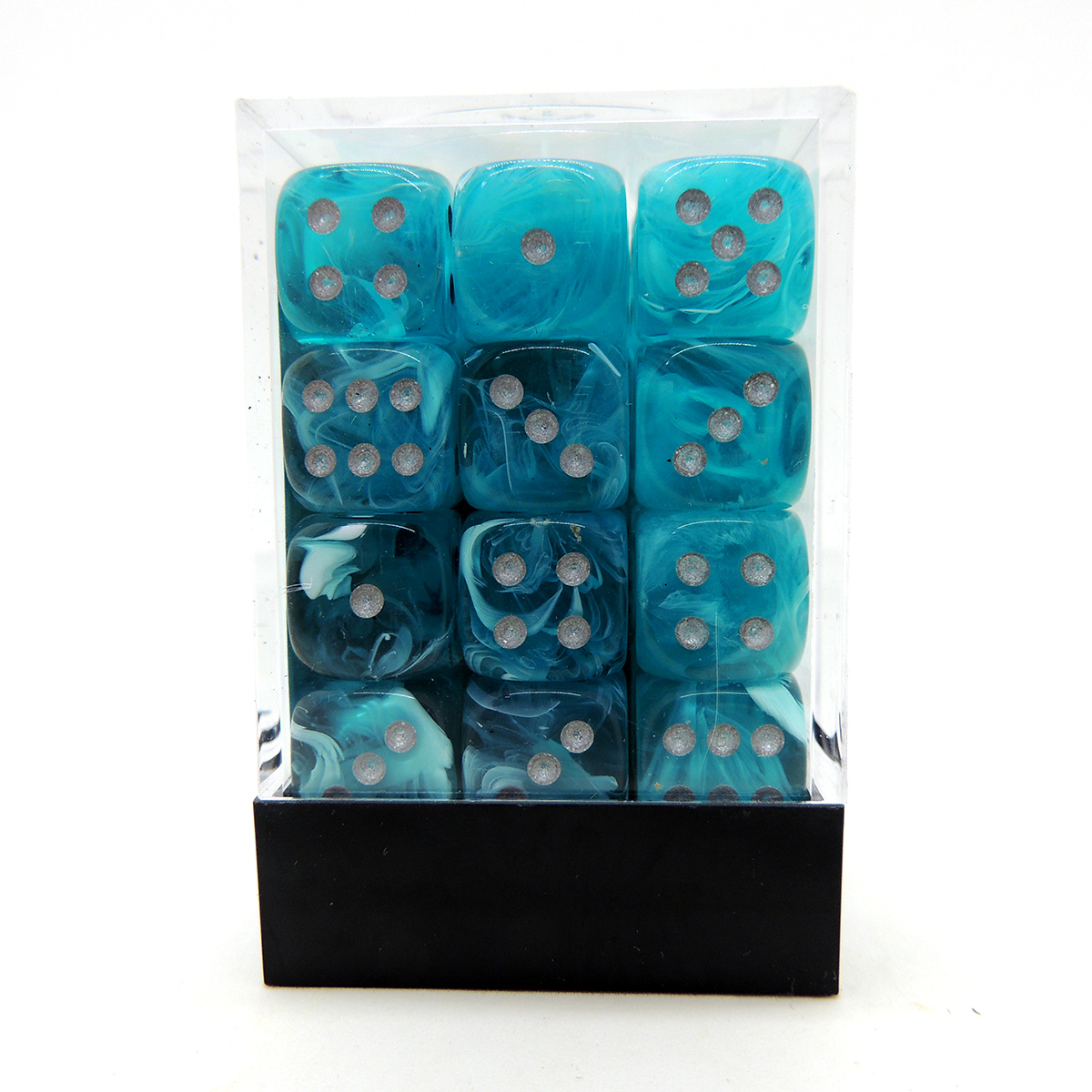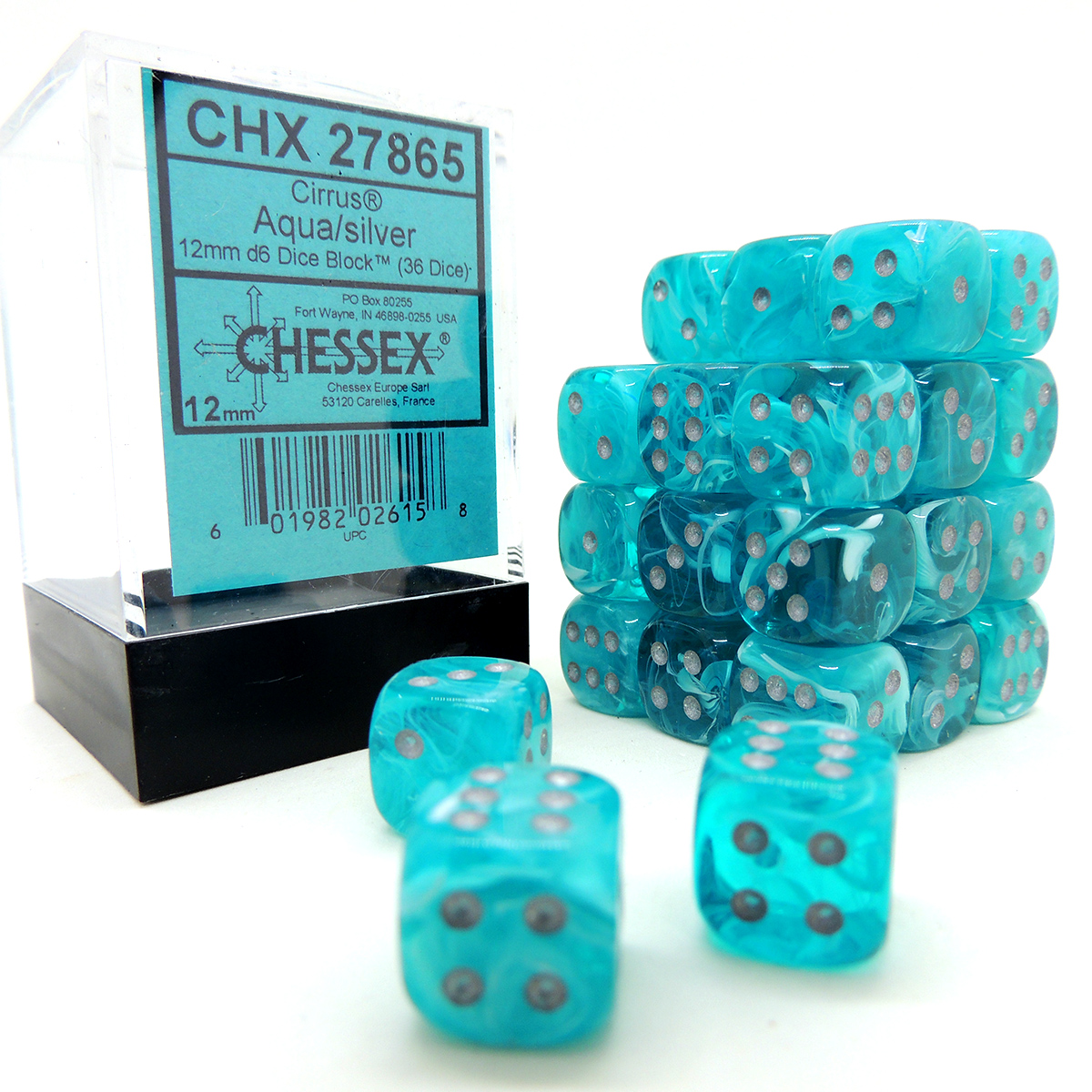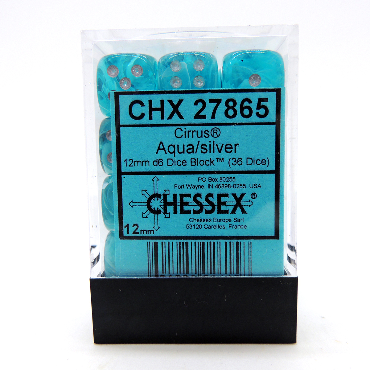 Chessex Dados 12mm Cirrus Aqua Silver Dice D6