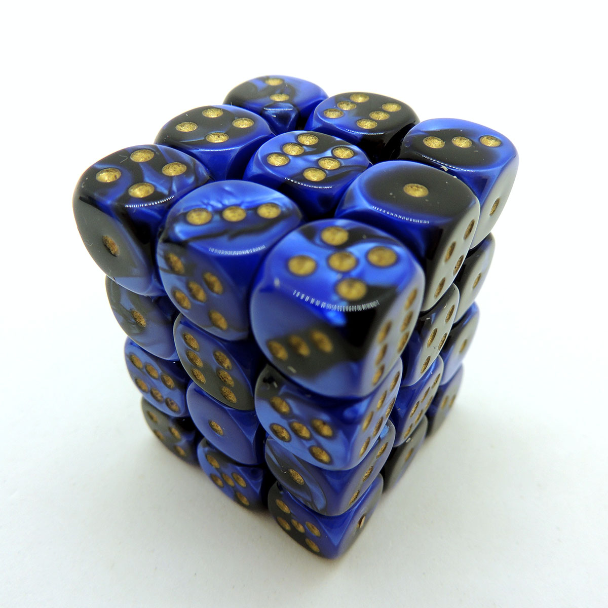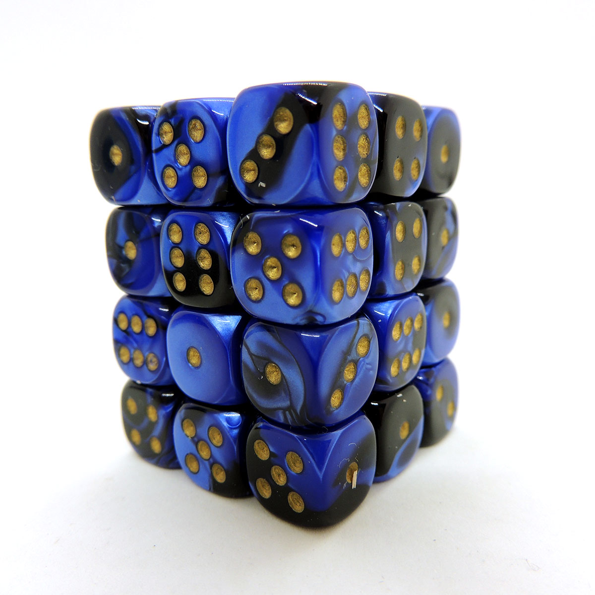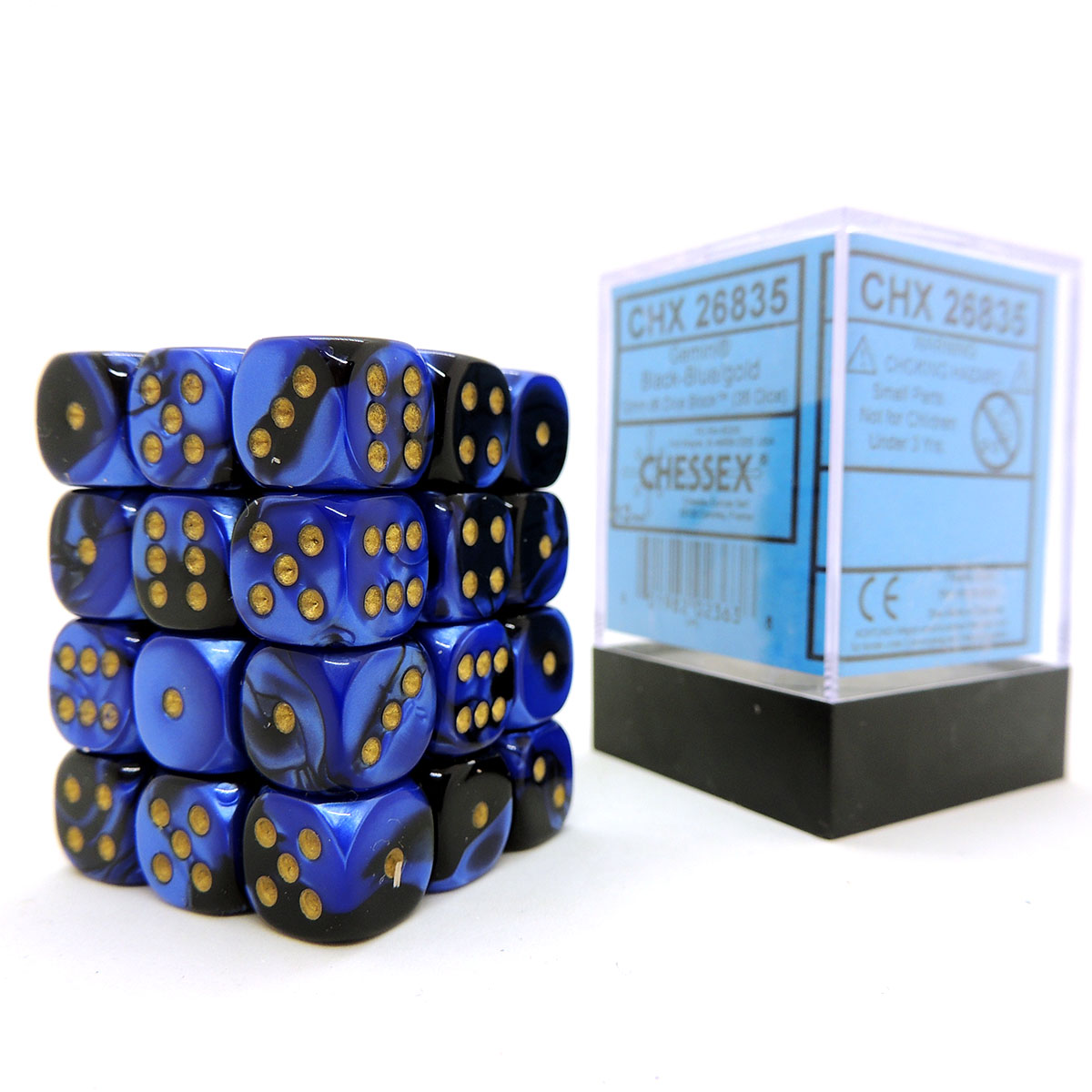 Chessex Dados 12mm Gemini: Black-Blue Gold Dices