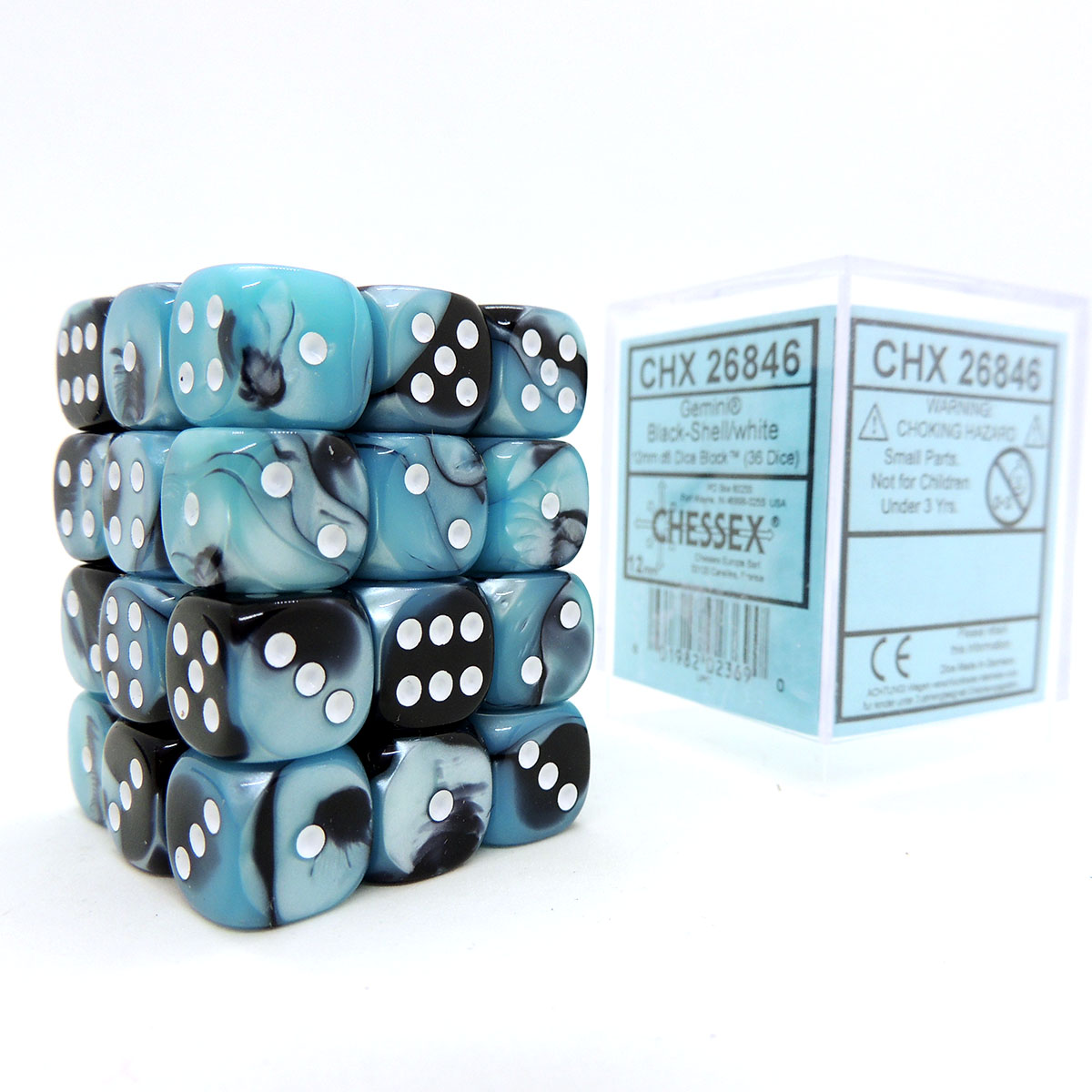 Chessex Dados 12mm Gemini: Black-Shell White Dices