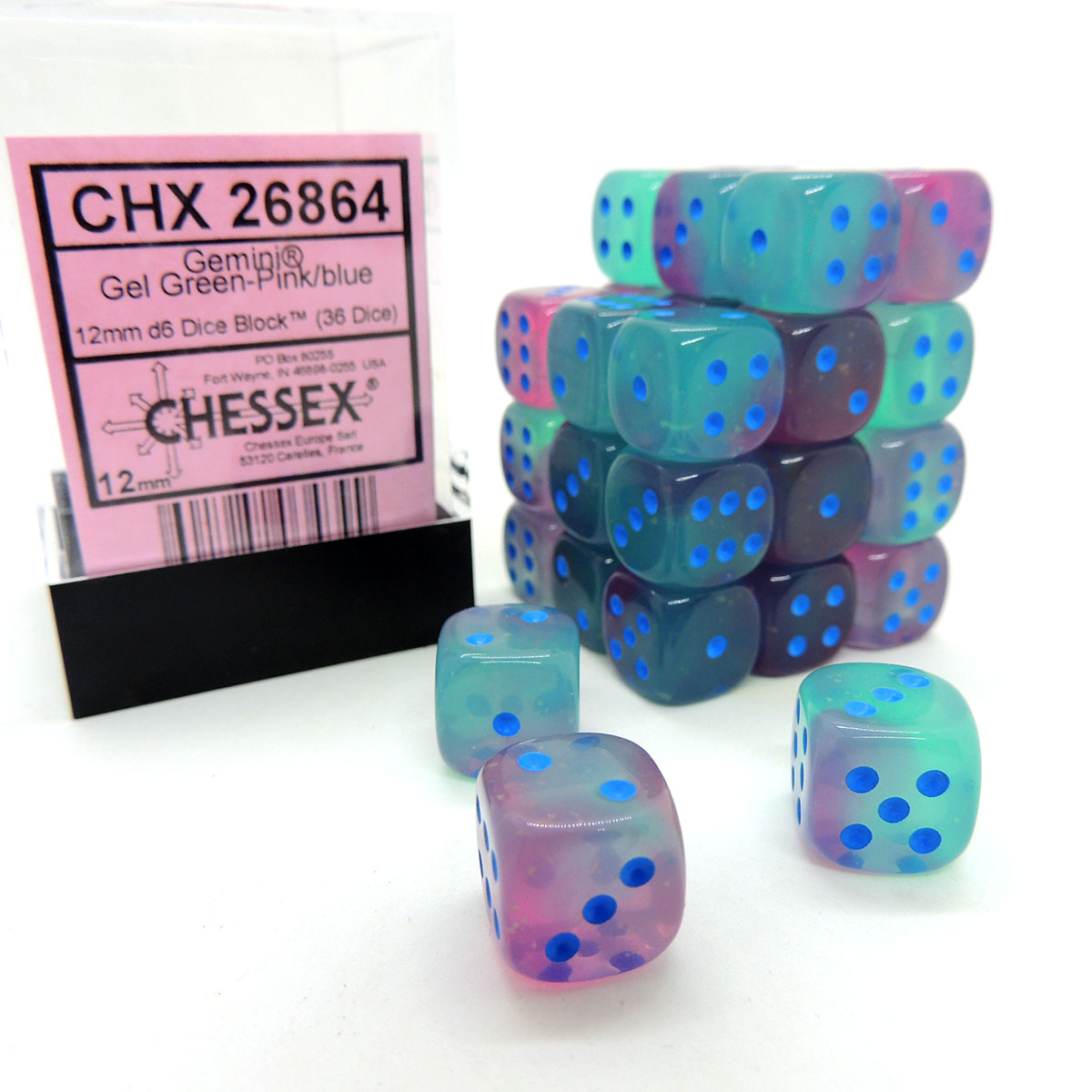 Chessex Dados 12mm Gemini: Gel Green Pink Blue Dices