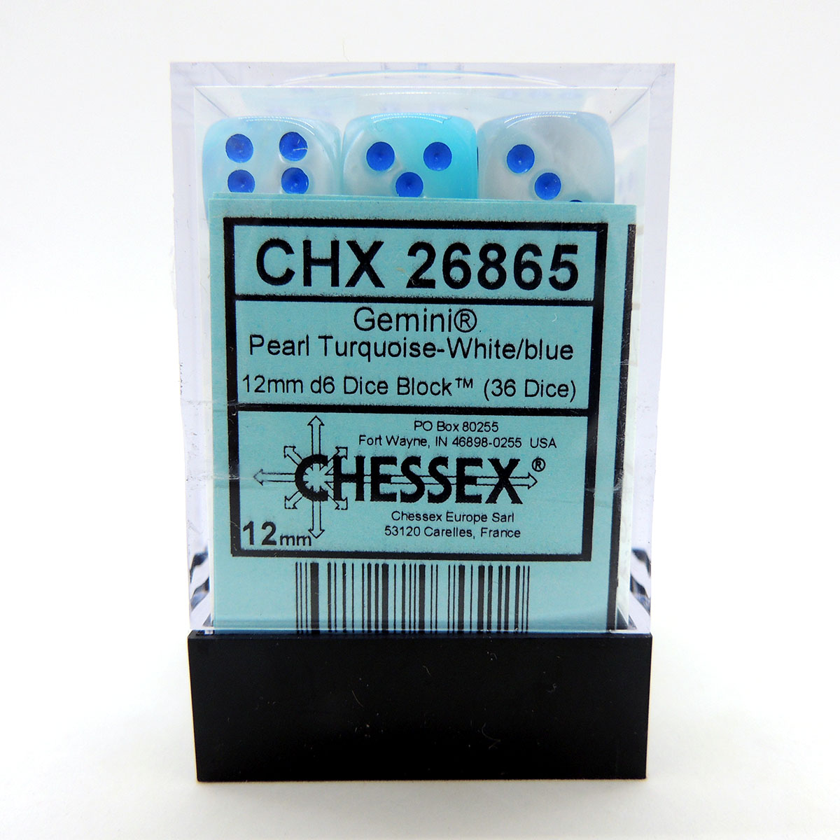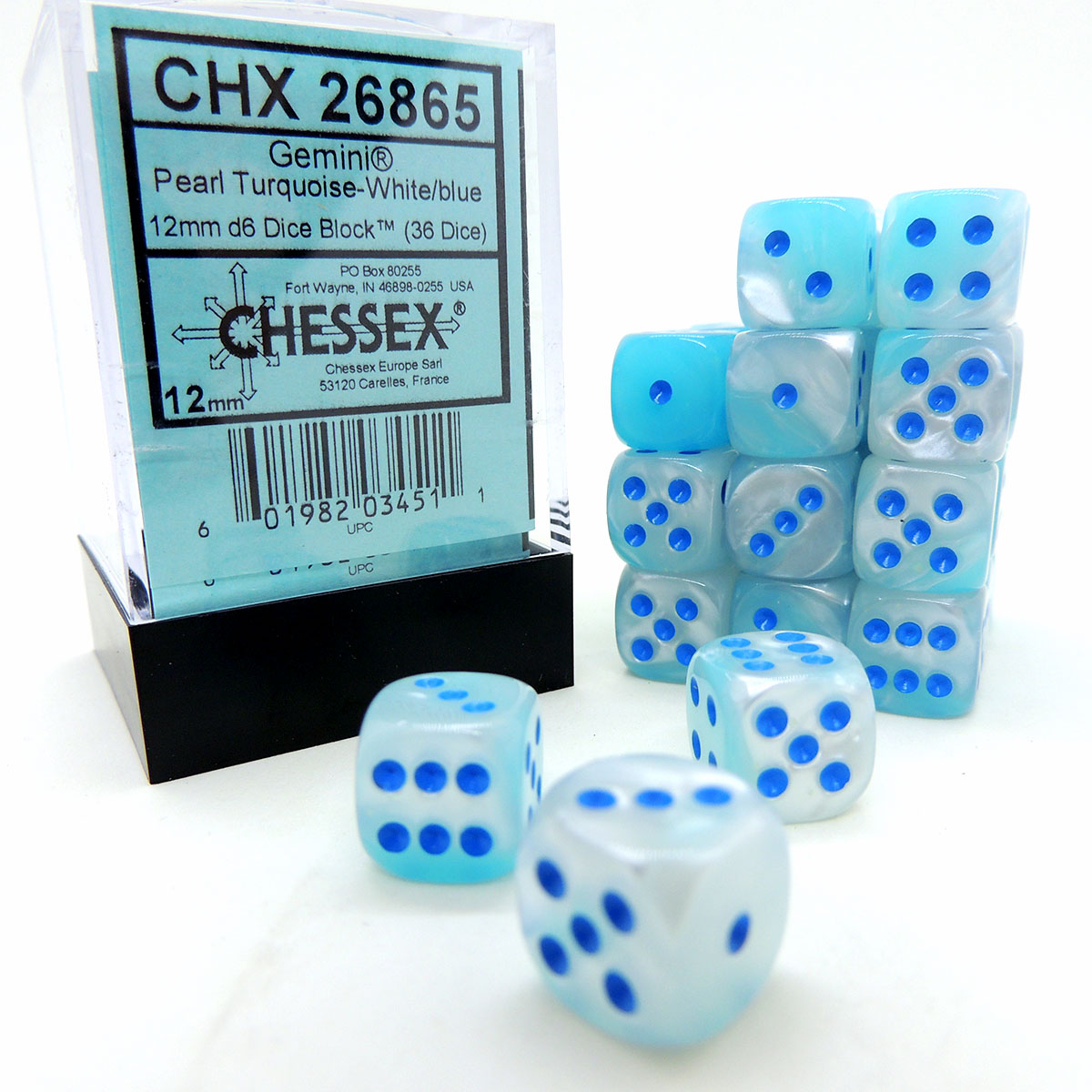 Chessex Dados 12mm Gemini: Perl Turquese White Blue Dices