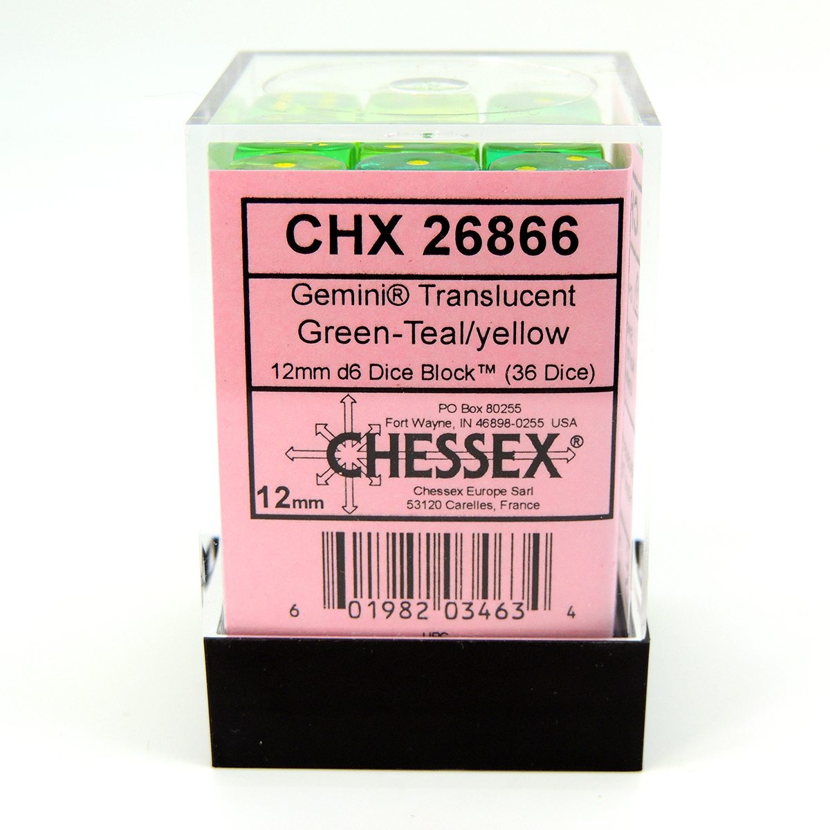 Chessex Dados 12mm Green-Teal/Yellow Translucent Dice D6