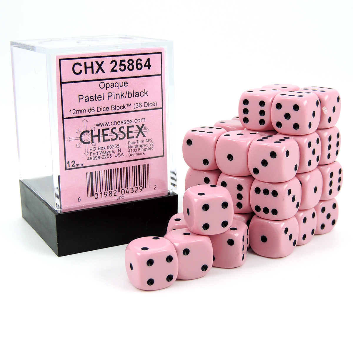 Chessex Dados 12mm Pink/Black Pastel Dice D6