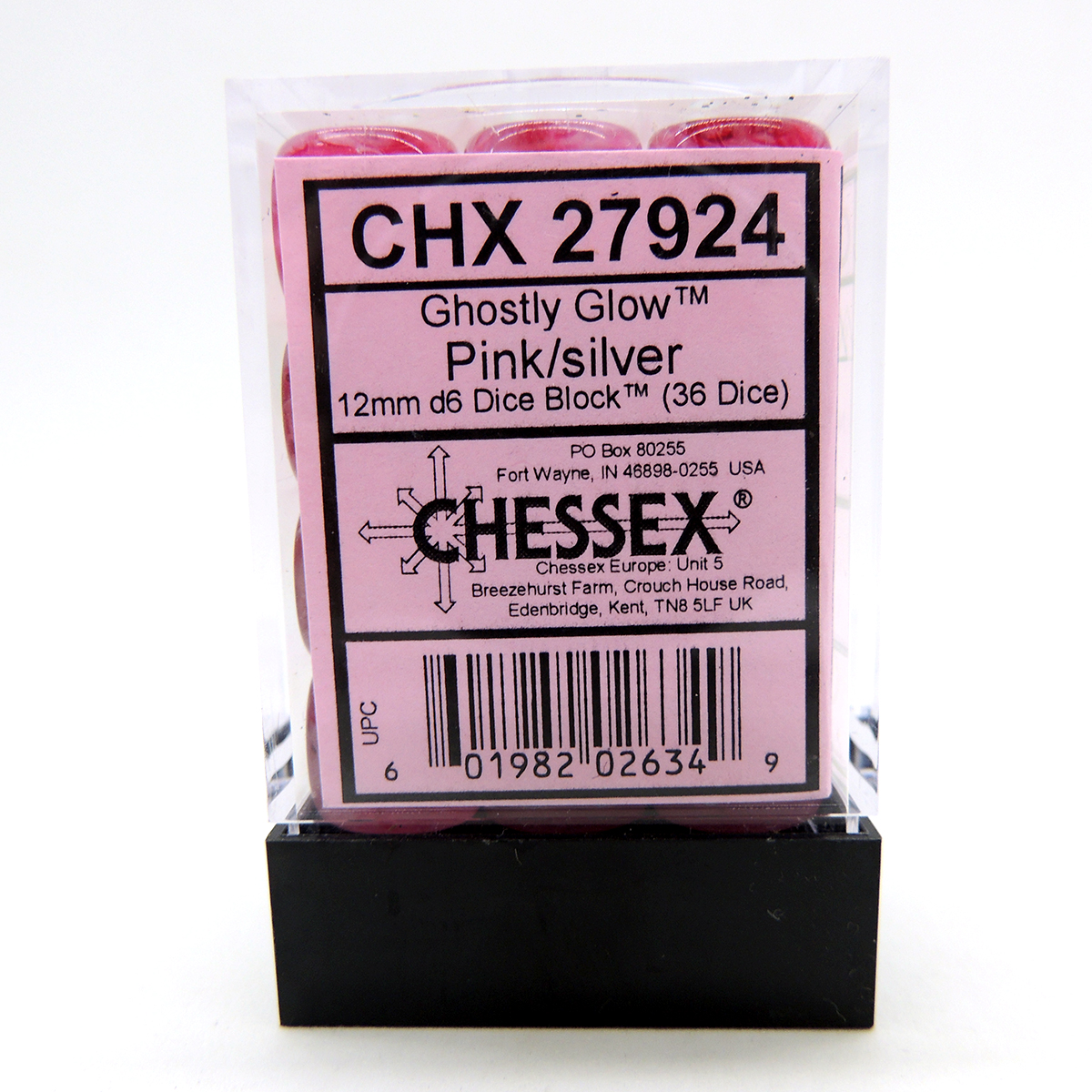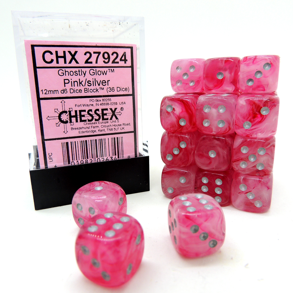 Chessex Dados 12mm Pink/Sliver Ghostly Glow Dice