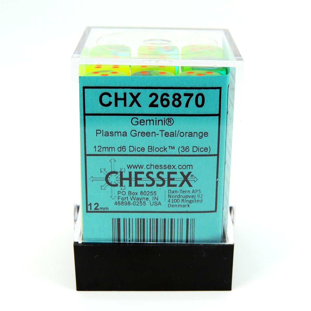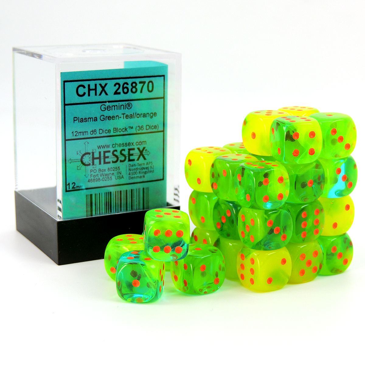 Chessex Dados 12mm Plasma Green-Teal/Orange Dice D6