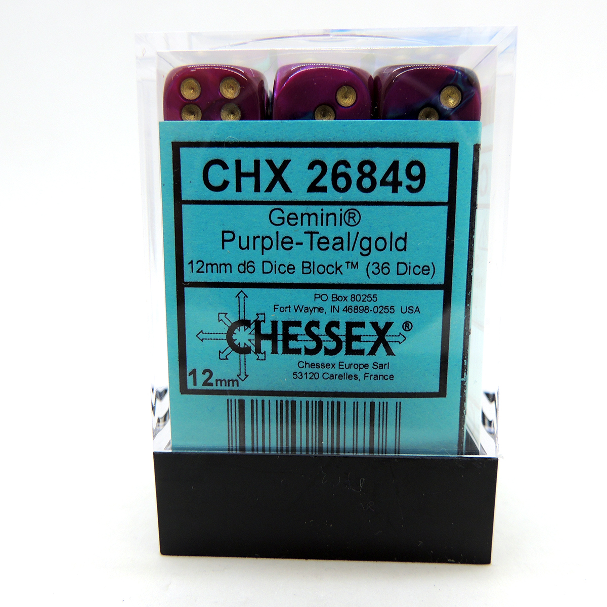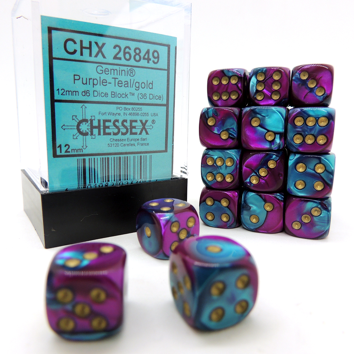 Chessex Dados 12mm Purple-Teal/Gold Gemini Dice