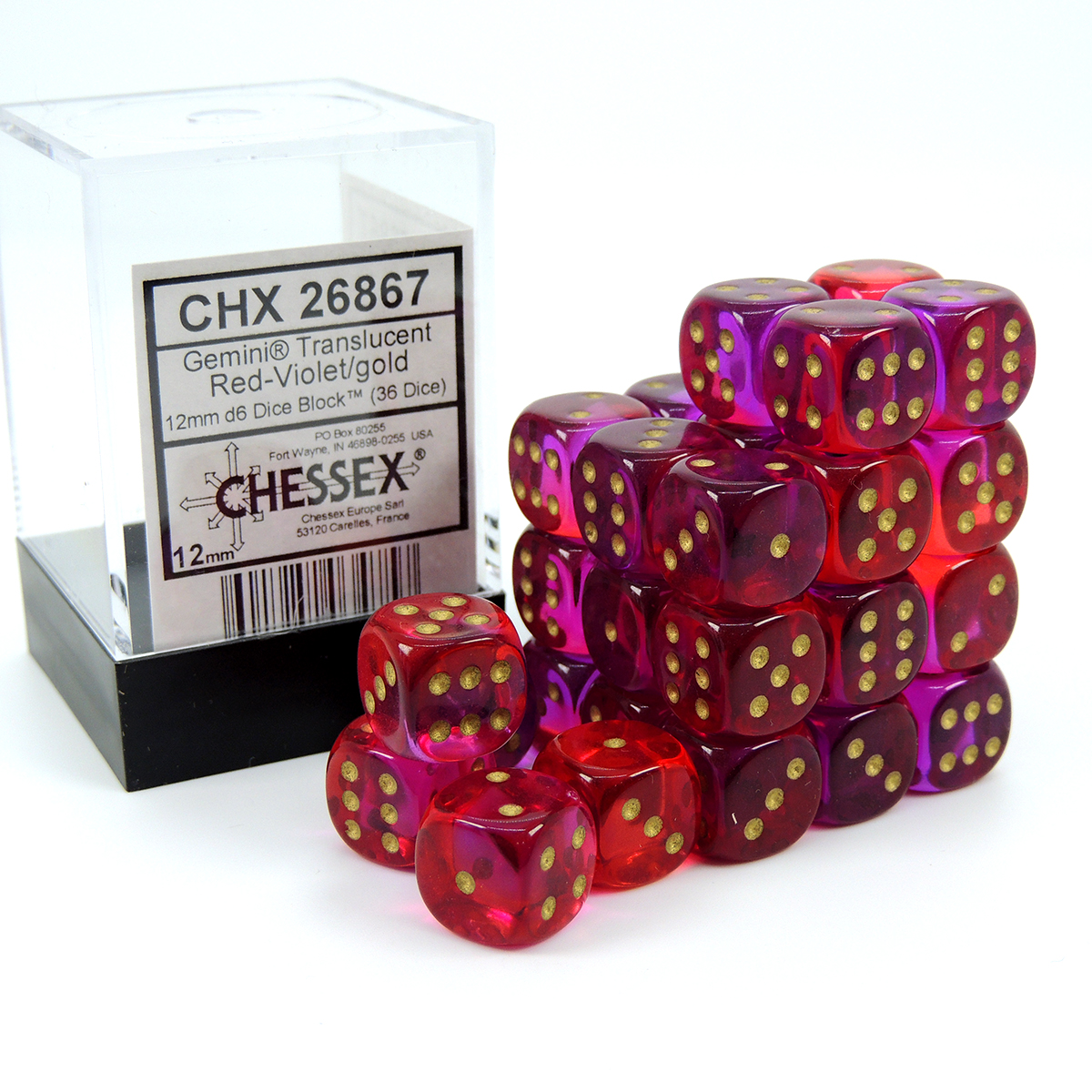 Chessex Dados 12mm Red-Violet/Gold Translucent Dice D6