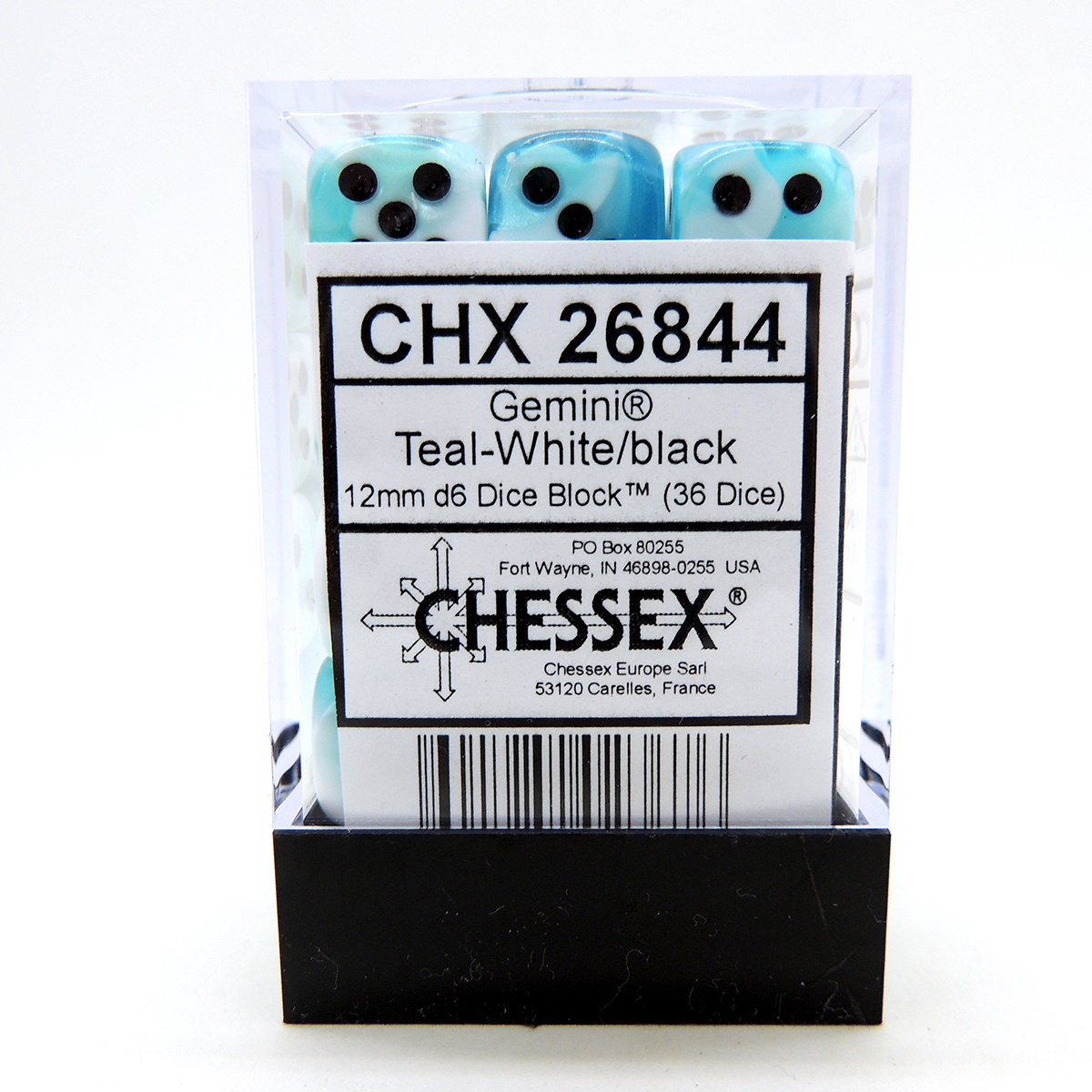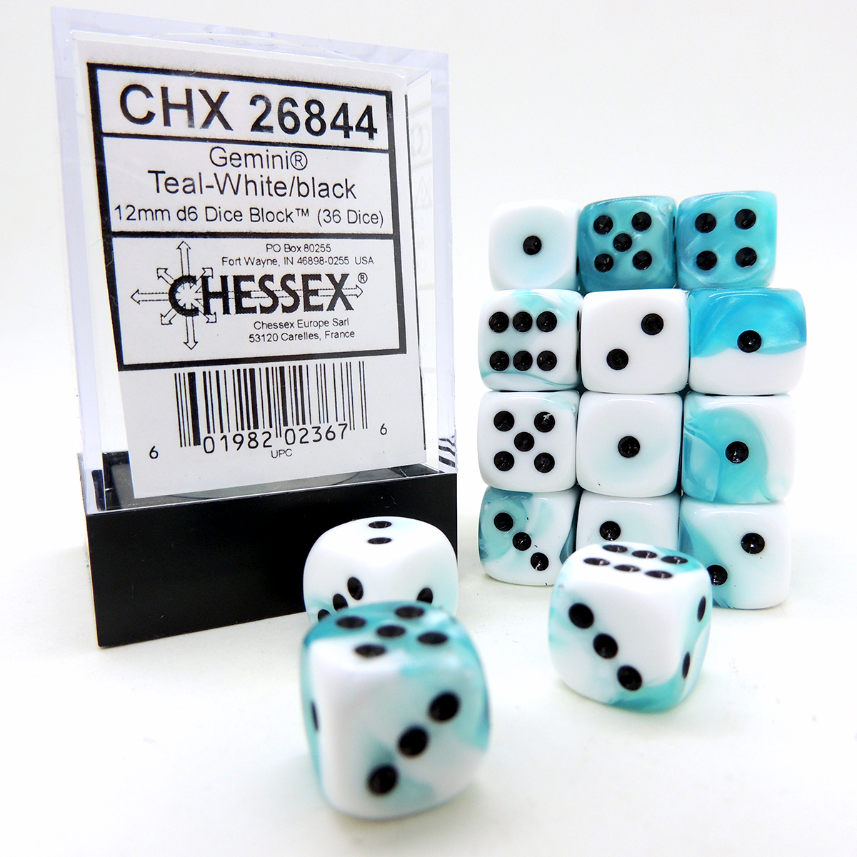 Chessex Dados 12mm Teal-White/black Gemini Dice