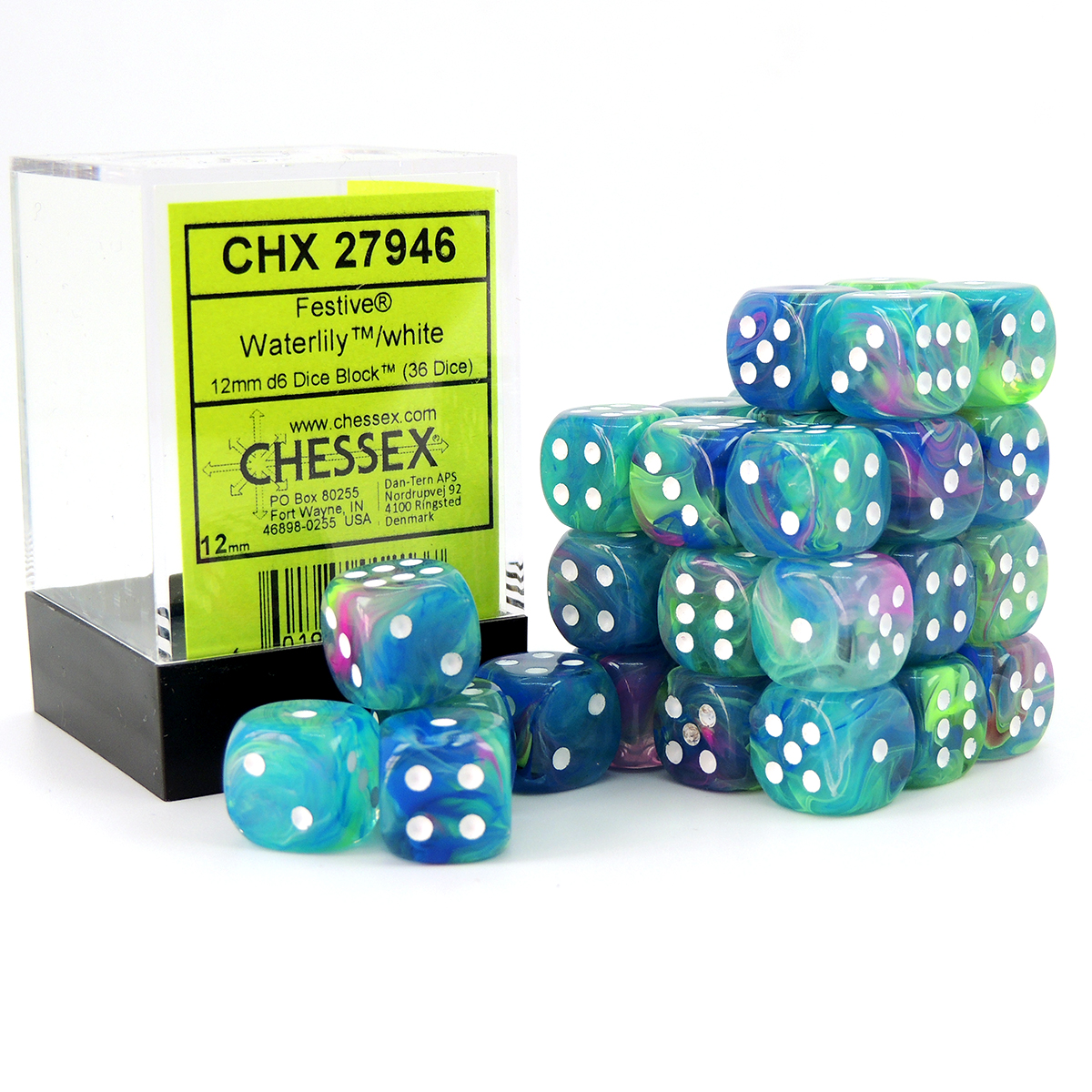 Chessex Dados 12mm Waterlily/White Festive Dice D6