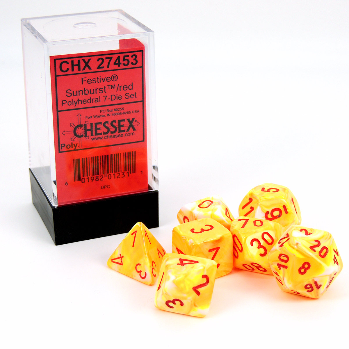 Chessex Dados D7 Menagerie Sunburst/Red Poly Festive