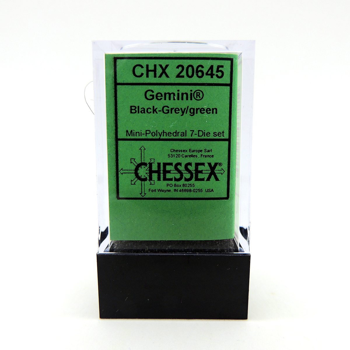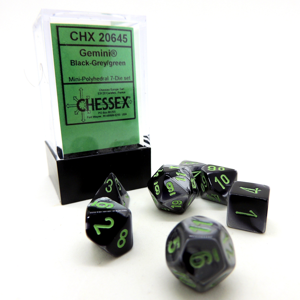 Chessex Dados Gemini 10mm Mini Black Grey Green D7