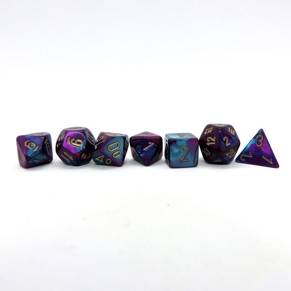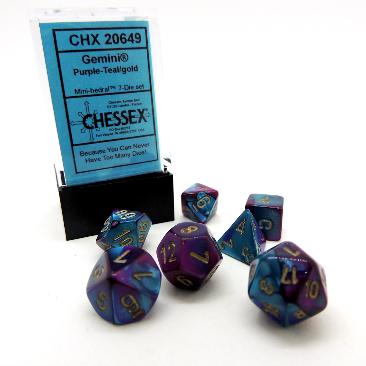 Chessex Dados Gemini 10mm Mini Purple Teal Gold D7