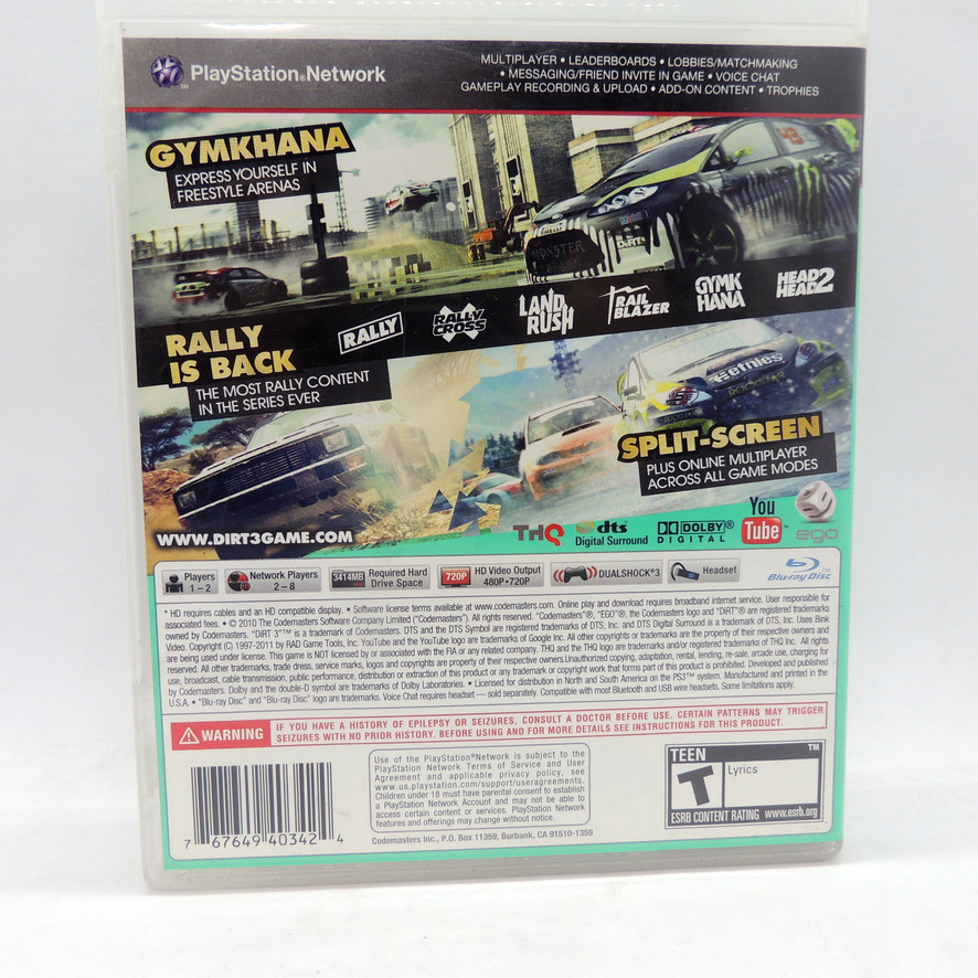 Dirt 3 Codemasters Sony Play Station 3 PS3 Video Juego Colección