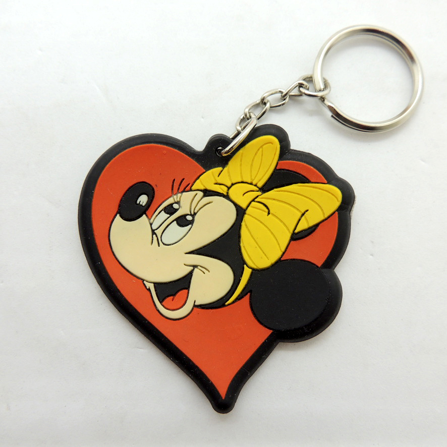 Disney Mickey Minnie Mouse Heart Keychain Rubber Antiguo Retro Vintage Colección