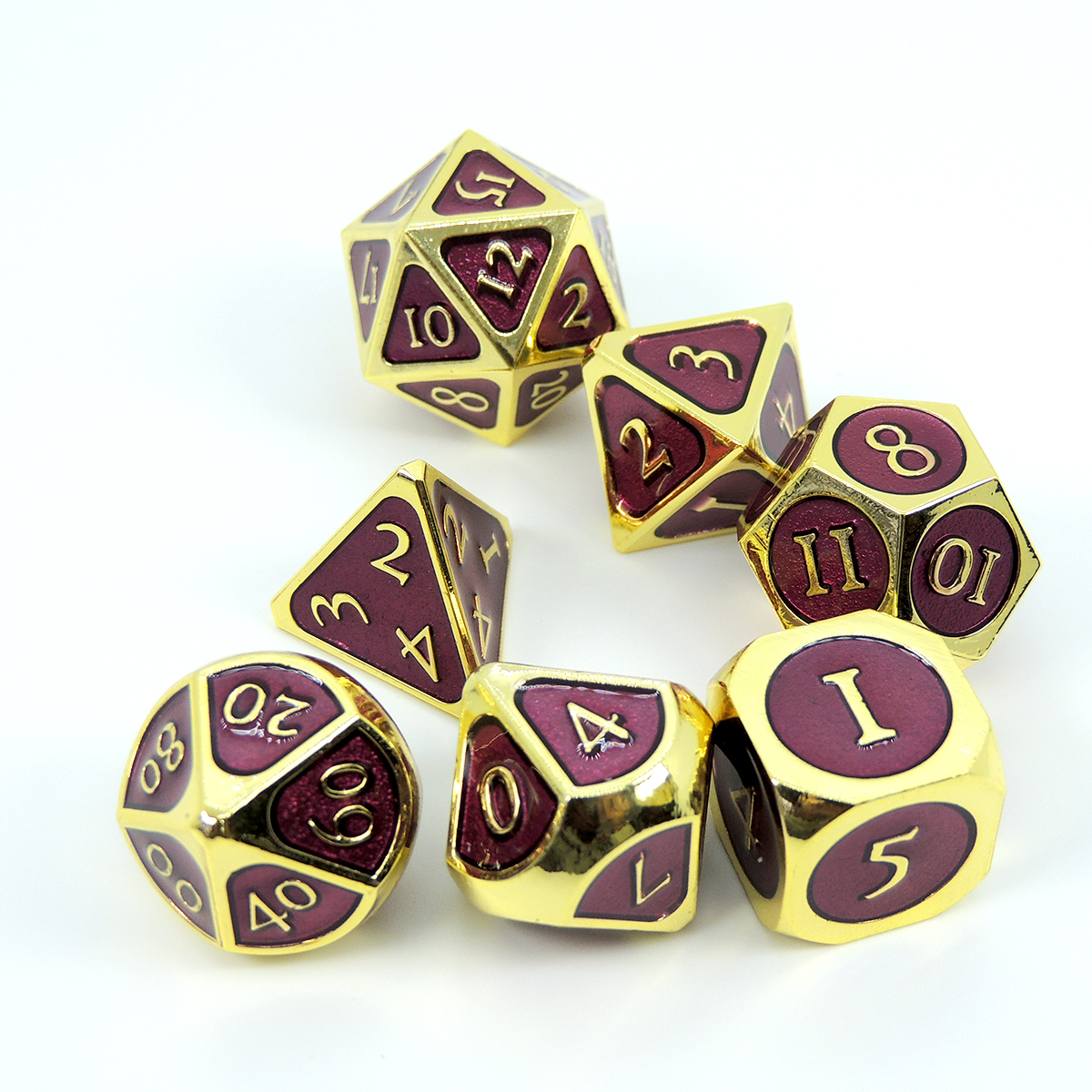 FanRoll Dados 16mm Gold with Purple Enamel Metal Dice D7