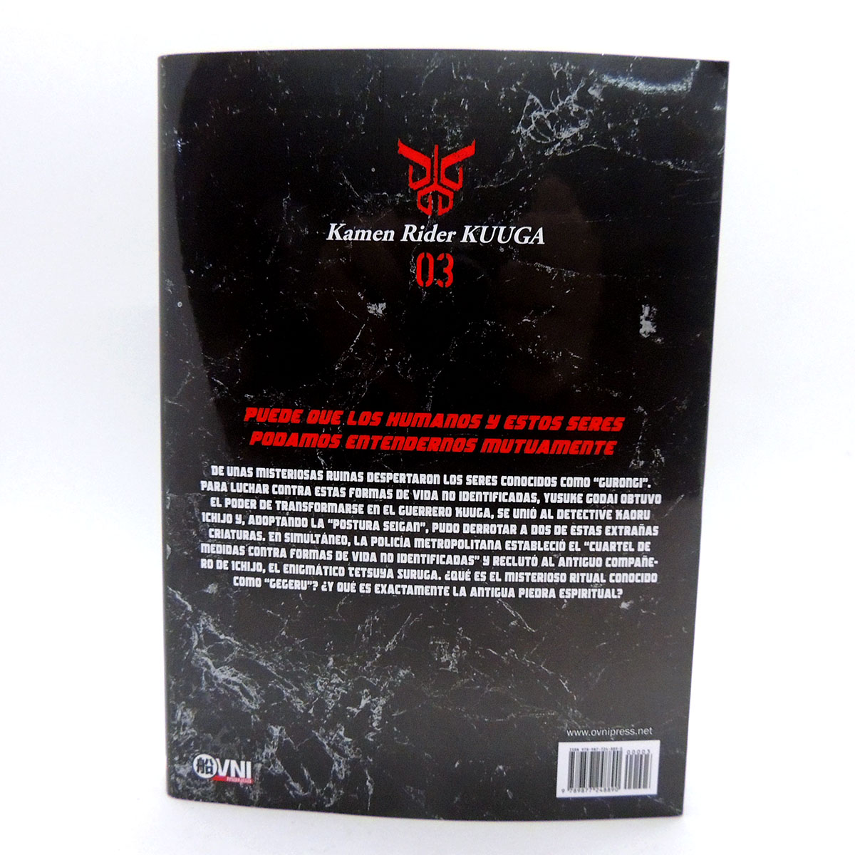 enigmático Tetsuya Suruga. ¿Qué es el misterioso ritual conocido como “gegeru”? ¿Y qué es exactamente la antigua piedra espiritual? Corresponde a Kamen Raidā Kūga vol. 3.