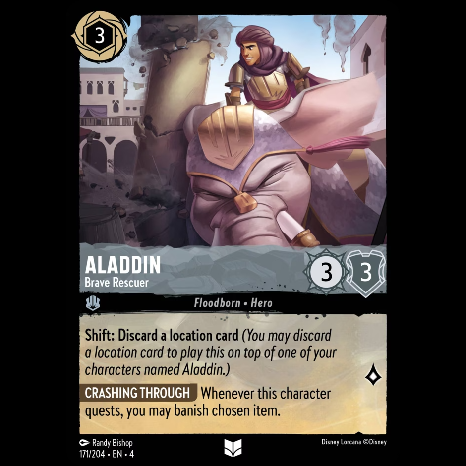 Shift: Discard a location card (You may discard a location card to play this on top of one of your characters named Aladdin.)