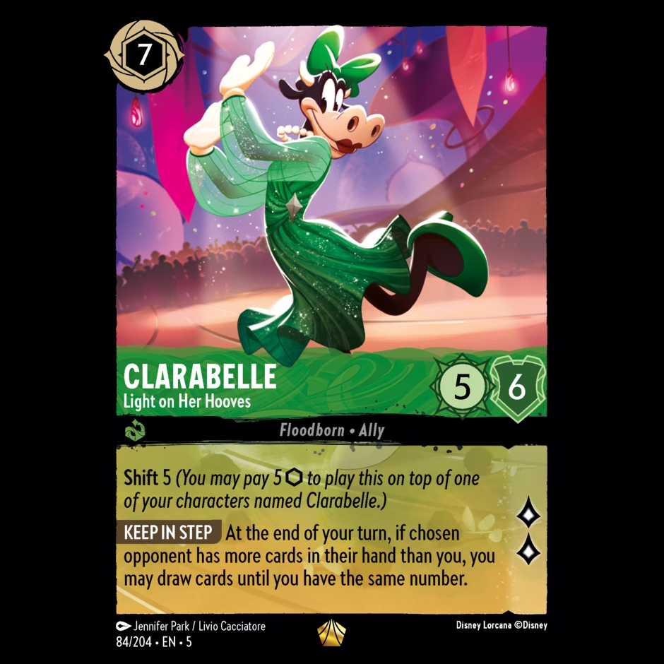 Shift 5 (You may pay 5 to play this on top of one of your characters named Clarabelle.)