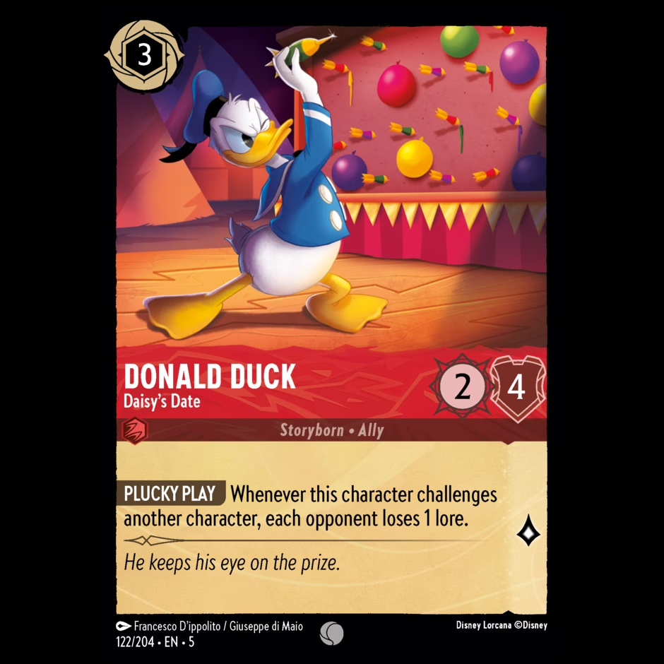 PLUCKY PLAY Whenever this character challenges another character, each opponent loses 1 lore.