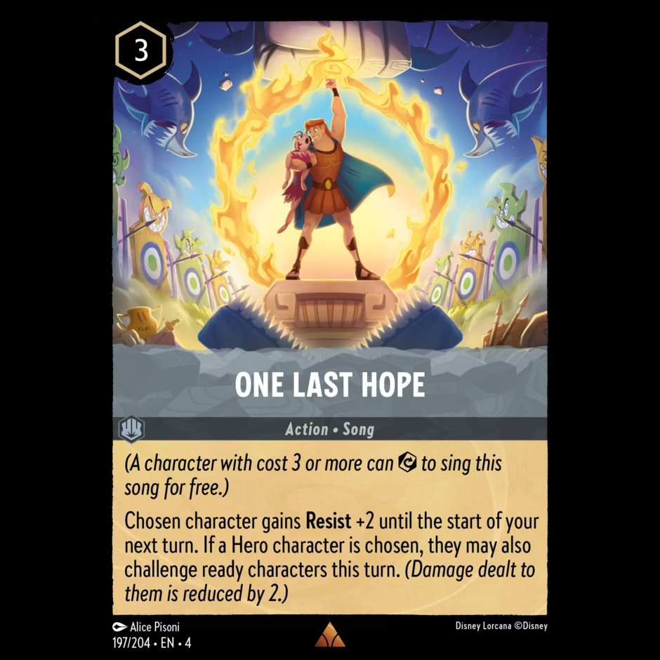 Chosen character gains Resist +2 until the start of your next turn. If a Hero character is chosen, they may also challenge ready characters this turn. (Damage dealt to them is reduced by 2.)