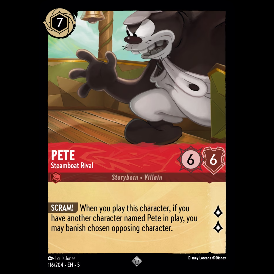 SCRAM! When you play this character, if you have another character named Pete in play, you may banish chosen opposing character.