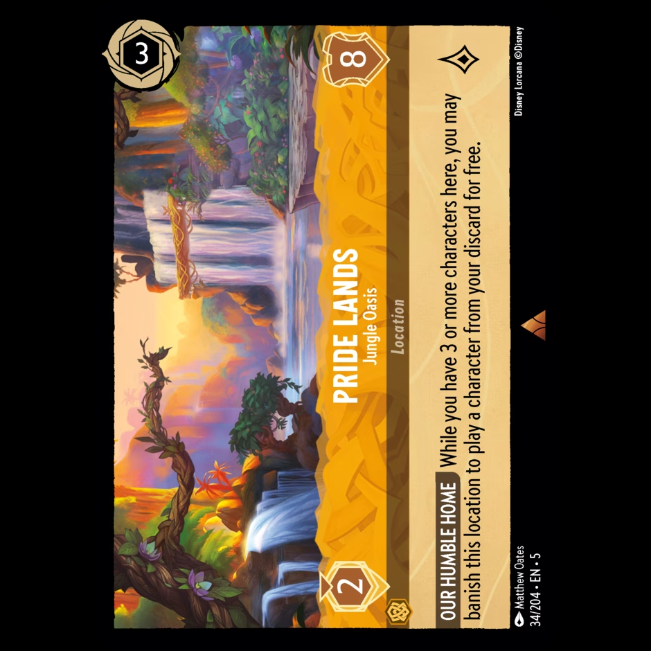 OUR HUMBLE HOME While you have 3 or more characters here, you may banish this location to play a character from your discard for free.
