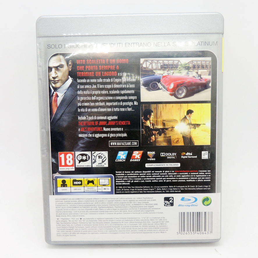 Mafia II 2 Platinum 2K Games Play Station 3 PS3 Video Juego Colección