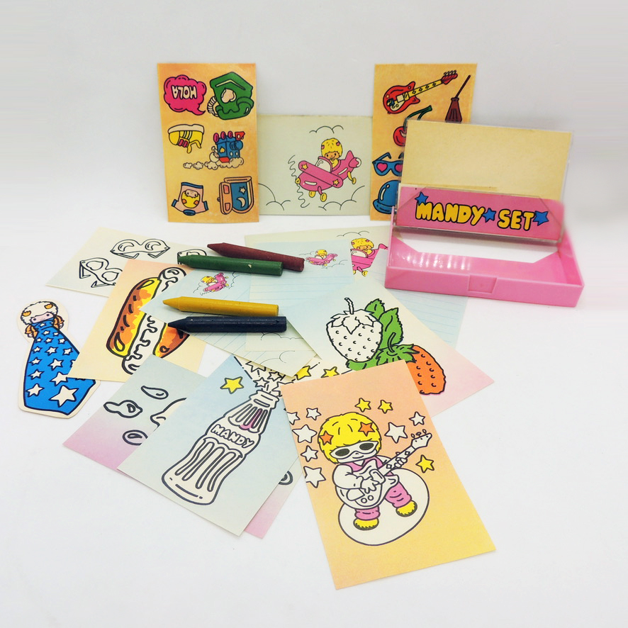 Mandy Set Cassette Papeles Carta Stickers Ind Argentina Antiguo Retro Vintage Colección