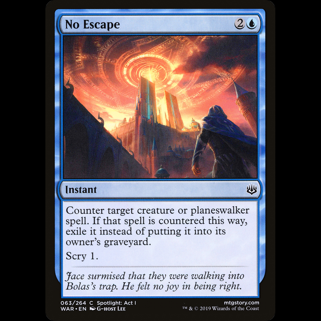 Counter target creature or planeswalker spell. If that spell is countered this way, exile it instead of putting it into its owner's graveyard.
