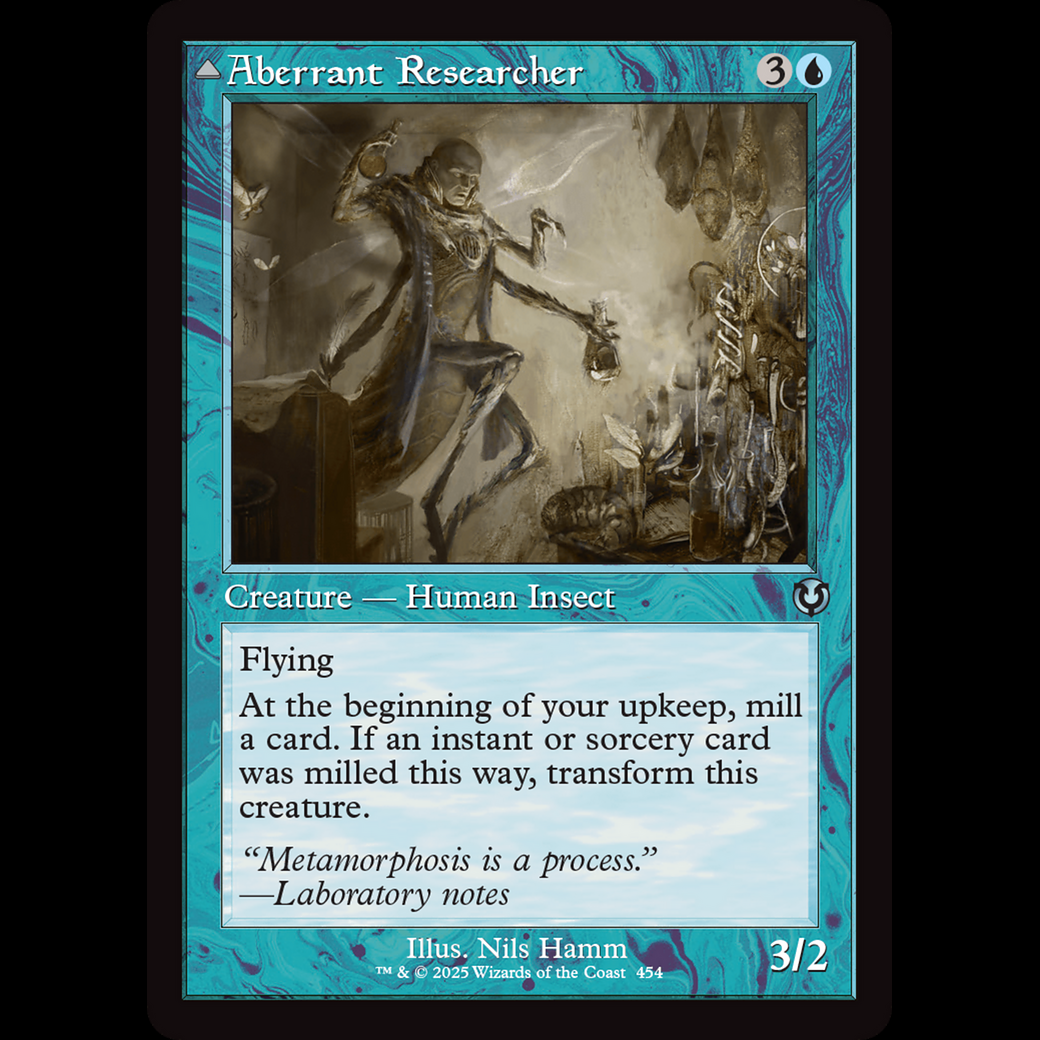 At the beginning of your upkeep, mill a card. If an instant or sorcery card was milled this way, transform Aberrant Researcher.