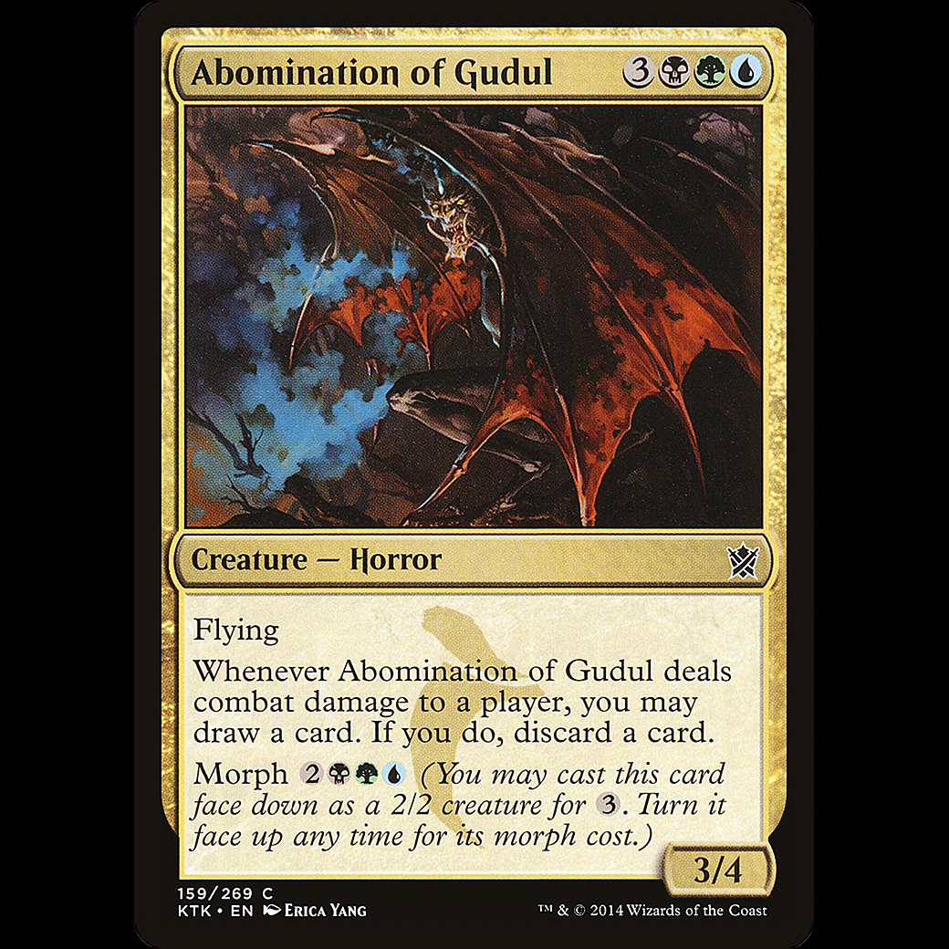 Whenever Abomination of Gudul deals combat damage to a player, you may draw a card. If you do, discard a card.