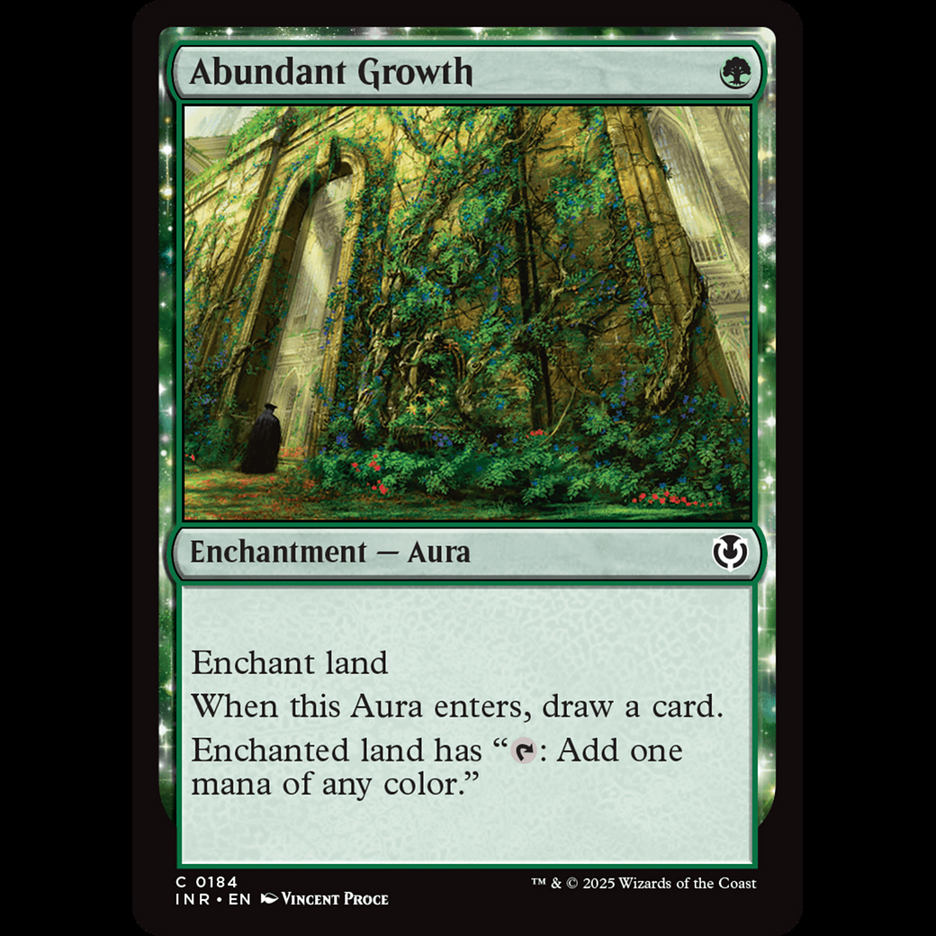 Enchant land When Abundant Growth enters, draw a card. Enchanted land has ": Add one mana of any color."