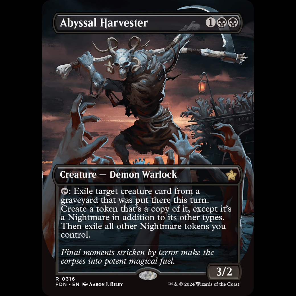 : Exile target creature card from a graveyard that was put there this turn. Create a token that's a copy of it, except it's a Nightmare in addition to its other types. Then exile all other Nightmare tokens you control.
