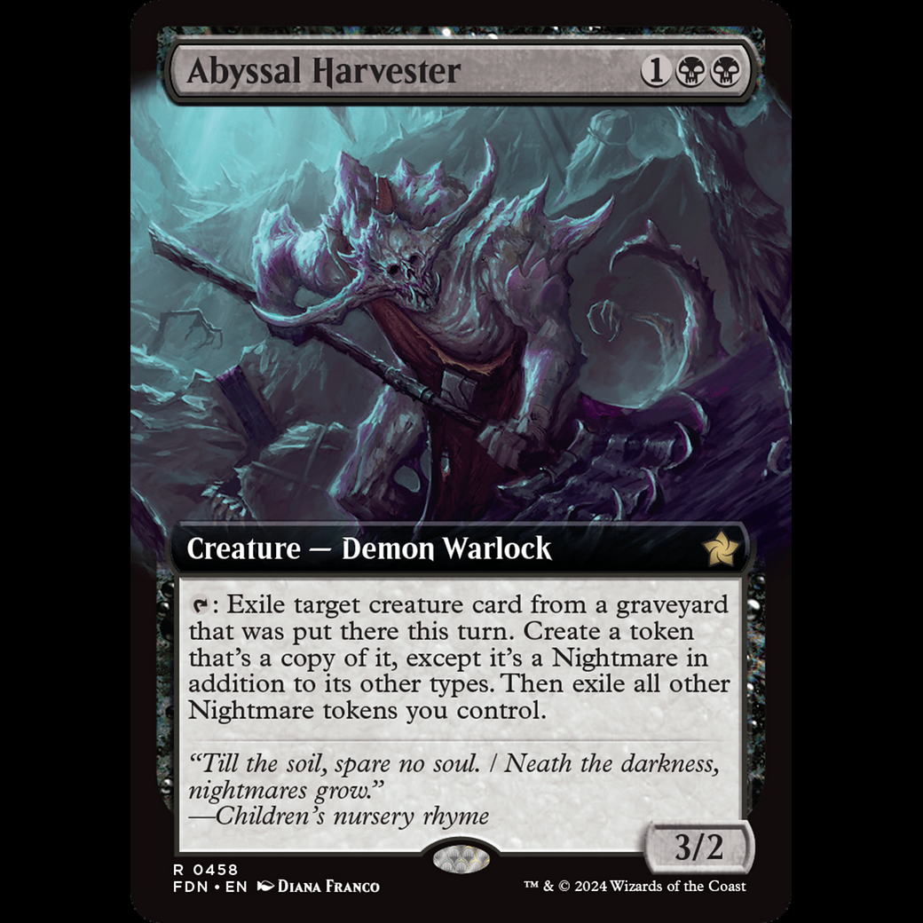 : Exile target creature card from a graveyard that was put there this turn. Create a token that's a copy of it, except it's a Nightmare in addition to its other types. Then exile all other Nightmare tokens you control.