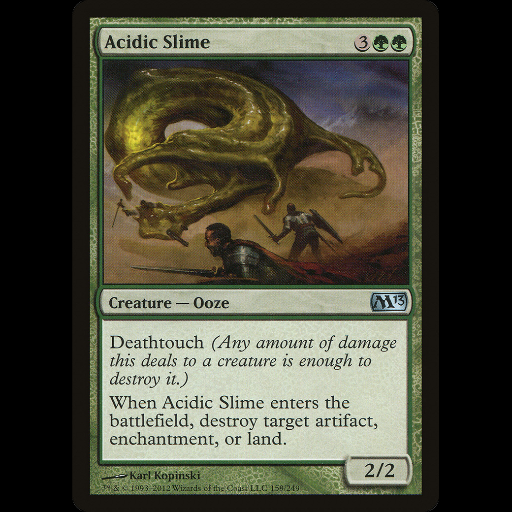 When Acidic Slime enters the battlefield, destroy target artifact, enchantment, or land.