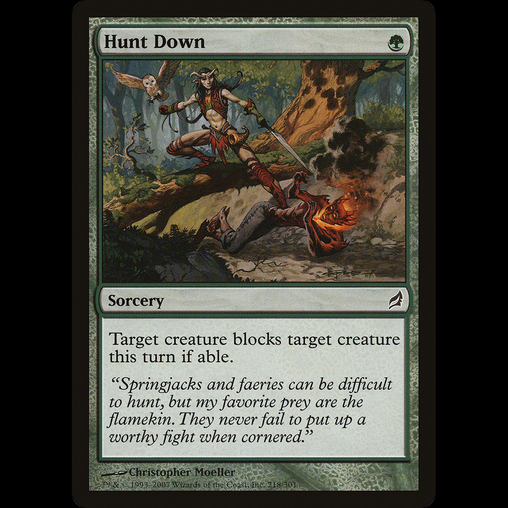 MTG Acorralar (Hunt Down) Lorwyn - PLTarget creature blocks target creature this turn if able.