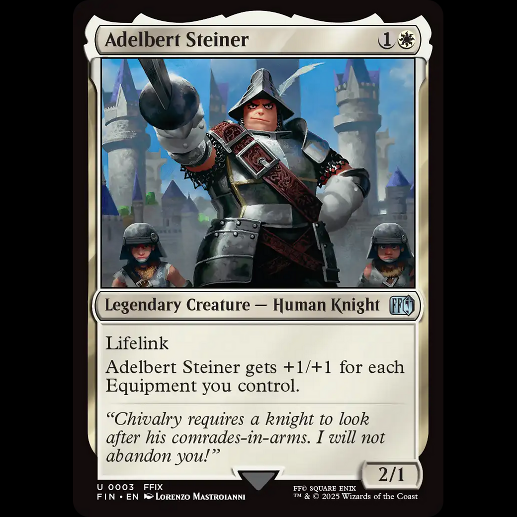 Adelbert Steiner gets +1/+1 for each Equipment you control.