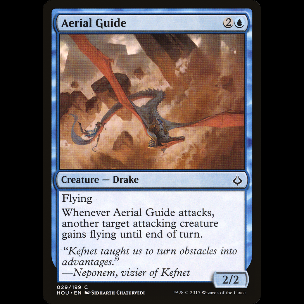 Whenever Aerial Guide attacks, another target attacking creature gains flying until end of turn.