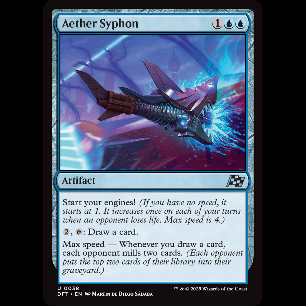 Max speed — Whenever you draw a card, each opponent mills two cards. (Each opponent puts the top two cards of their library into their graveyard.)