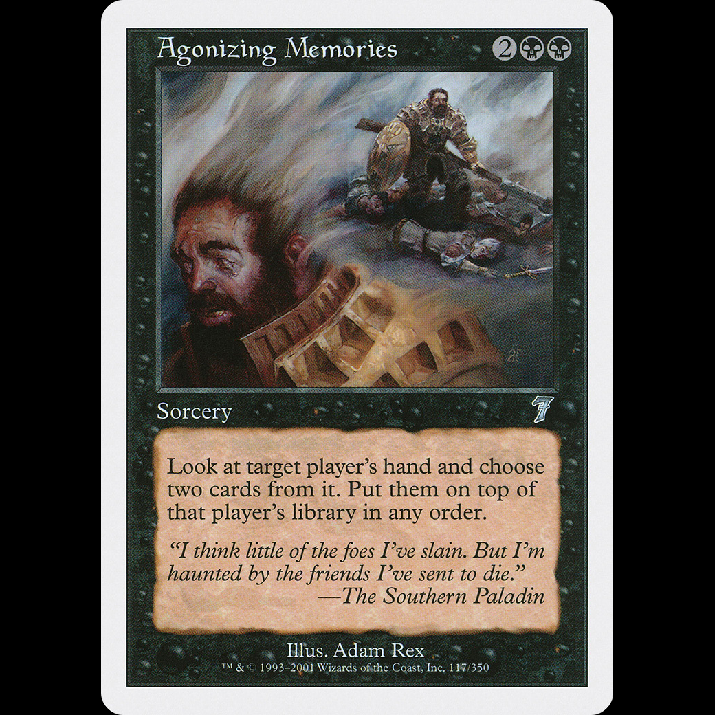 Look at target player's hand and choose two cards from it. Put them on top of that player's library in any order.