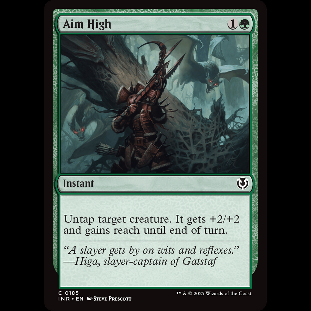 Untap target creature. It gets +2/+2 and gains reach until end of turn. (It can block creatures with flying.)